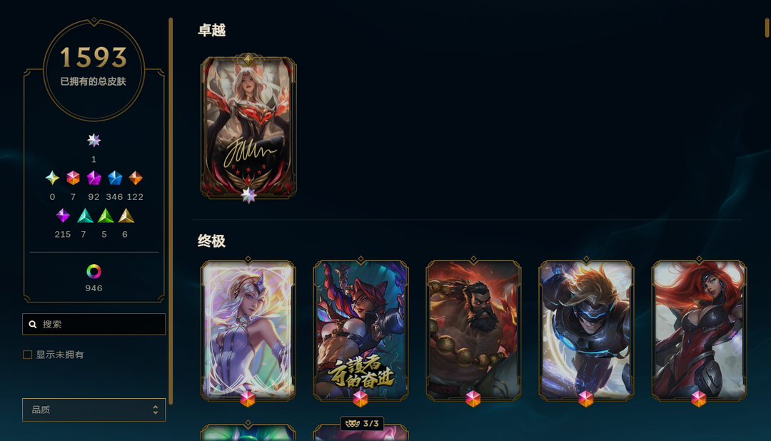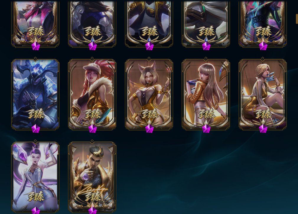 土豪专属、签名狐狸、兔年剪纸刀妹、全终极、龙瞎、玉剑传说男刀女刀、斩星魔剑、神龙尊者亚索