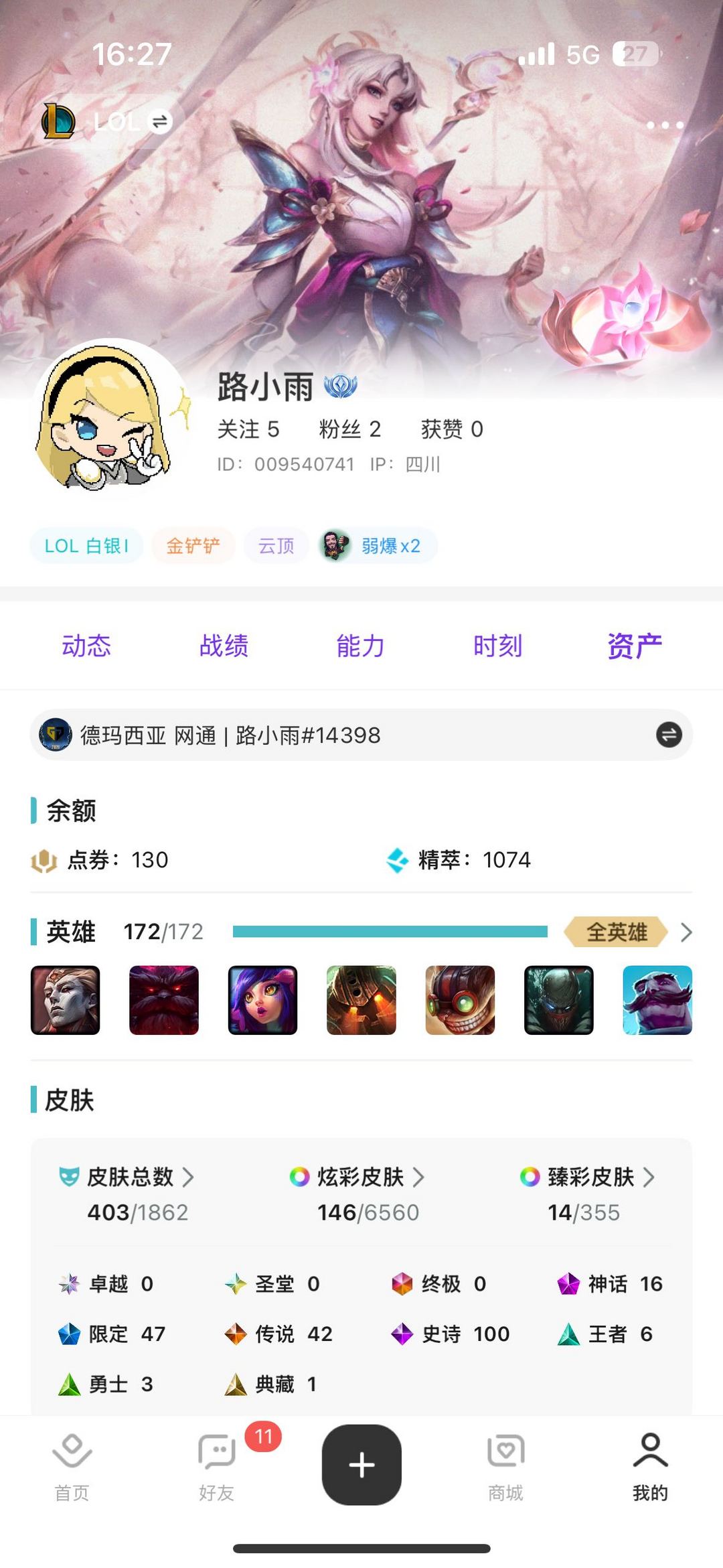 游戏区服:英雄联盟-联盟五区-德玛西亚