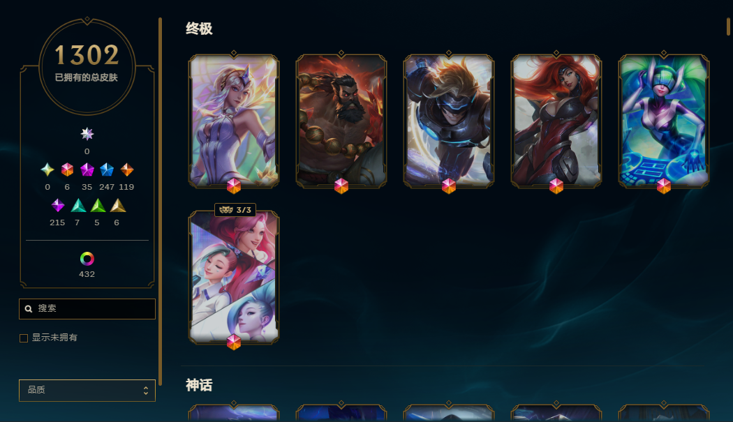 【艾欧尼亚】云顶17神话、龙虾龙刀、哥特萝莉、玉剑男刀/舞剑仙、EDG/DRX/至高天