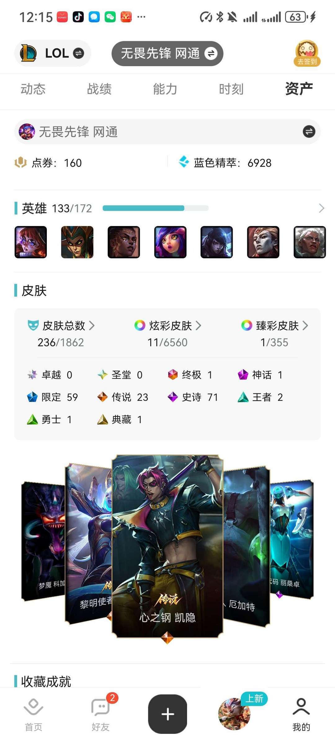 10几年老号,没怎么玩过。炸鱼带妹首选200多皮肤