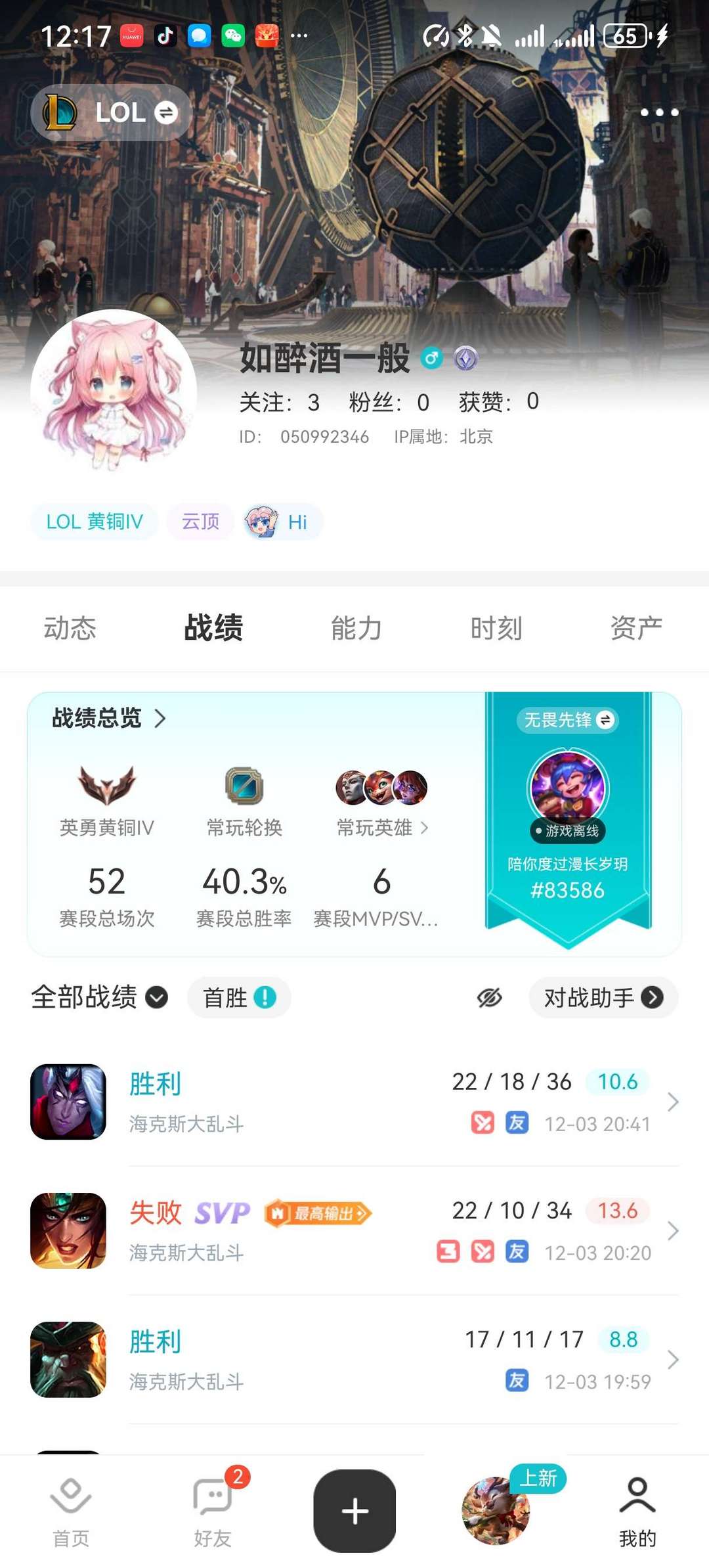 游戏区服:英雄联盟-联盟五区-无畏先锋