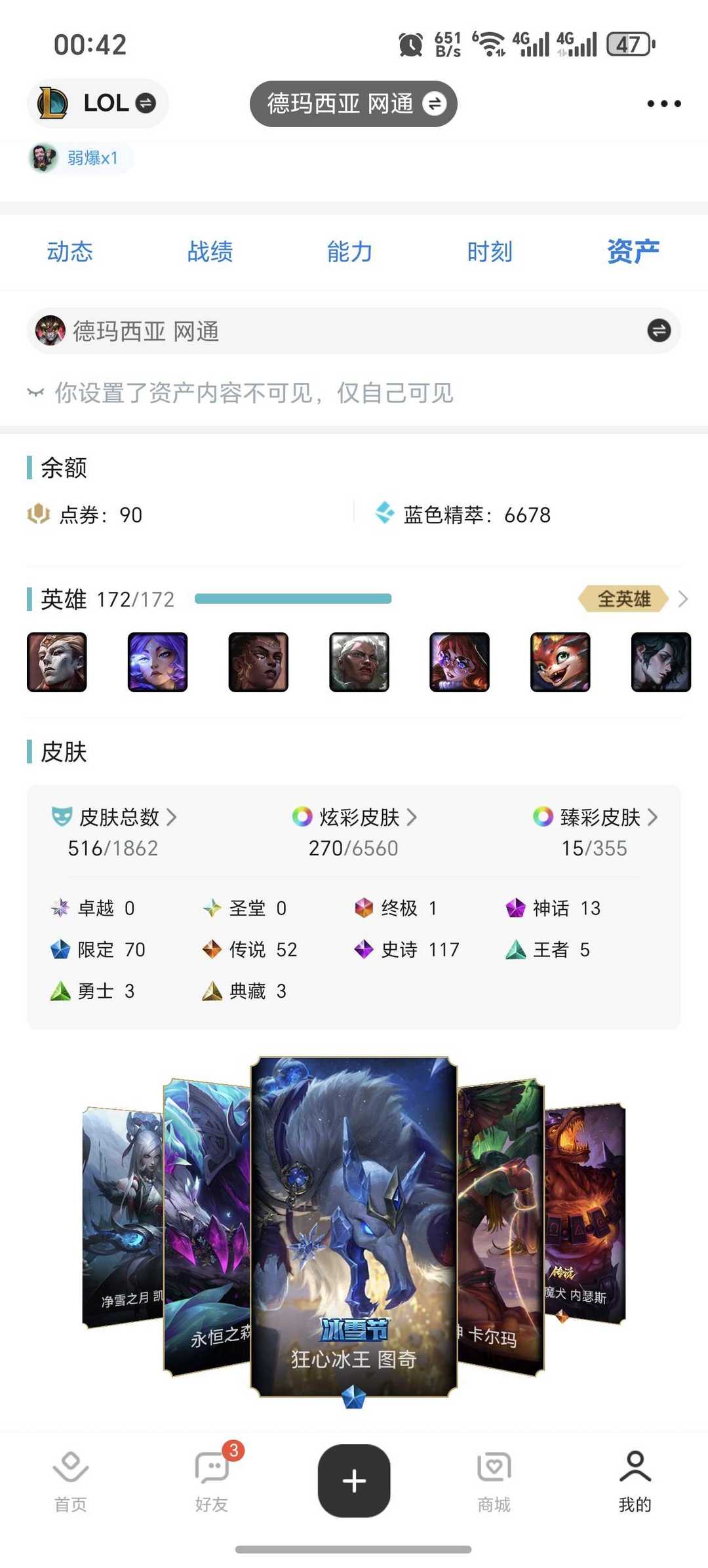 德玛西亚钻石号★全英雄★诺手几乎全套皮肤★上单皮肤多★上单号★可排位★至臻塞拉斯俩个★泳池派对船