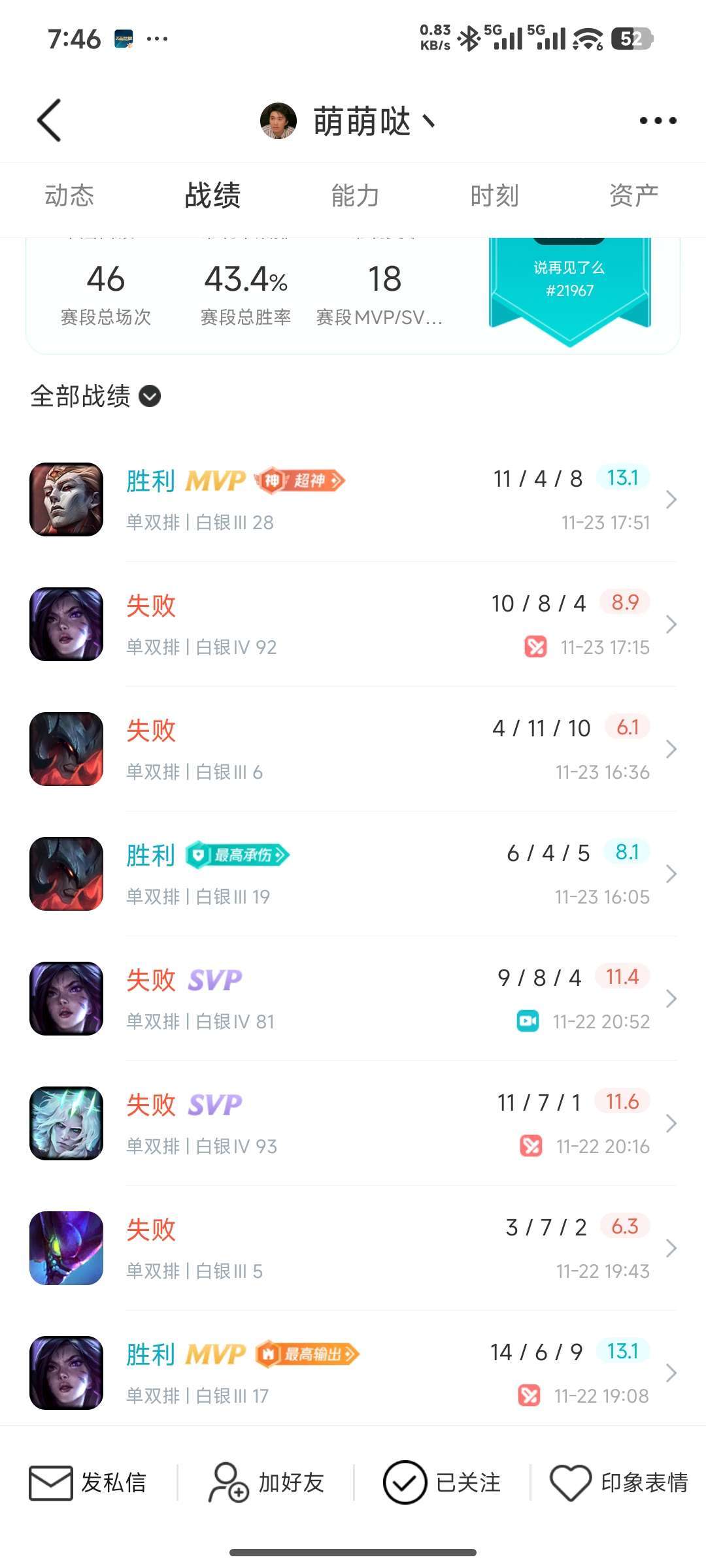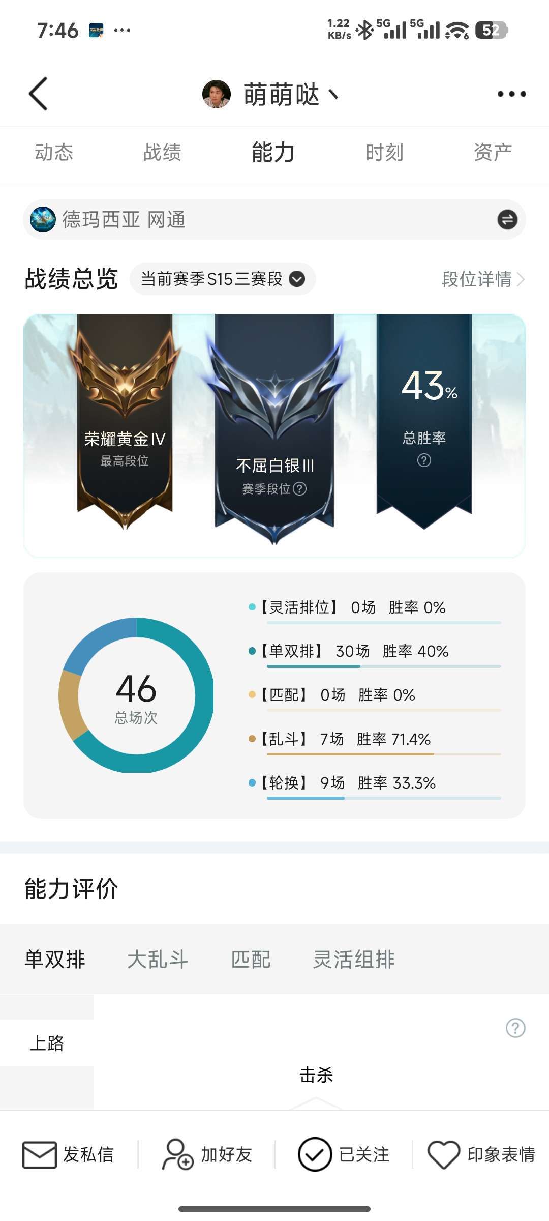 段位:115级 不屈白银III