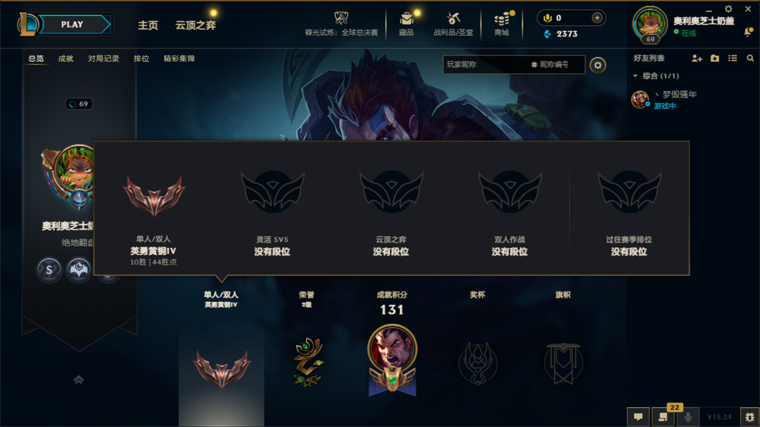 游戏区服:英雄联盟-联盟五区-无畏先锋