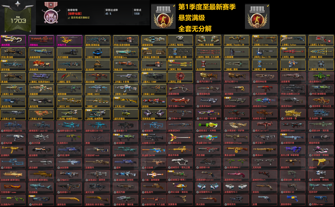 深红称】1703级】怀旧重铸感染号怀旧雷神】全套沙尘改进原石】全赛季】全光束】闪电喷子94】歼星迷彩