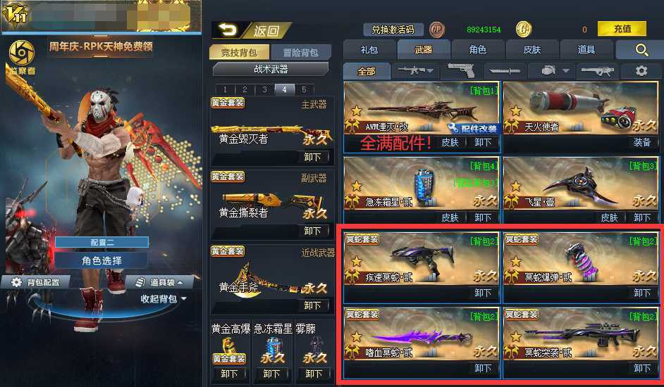 v11全满配件AWM•赤色湮灭!雷神终焉!广陵贰!无限ex+血魔!无畏骑士贰!满幻锋!满冥蛇套二阶!