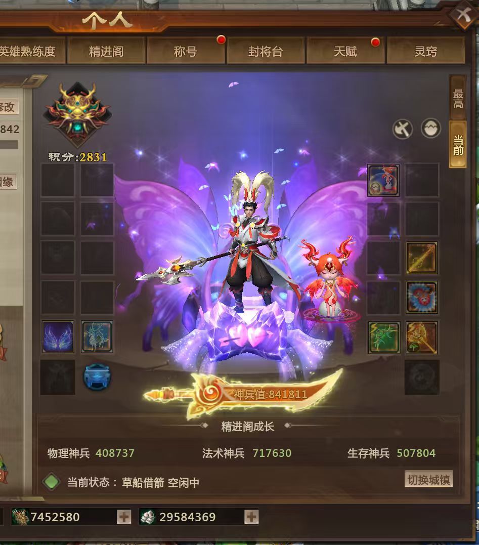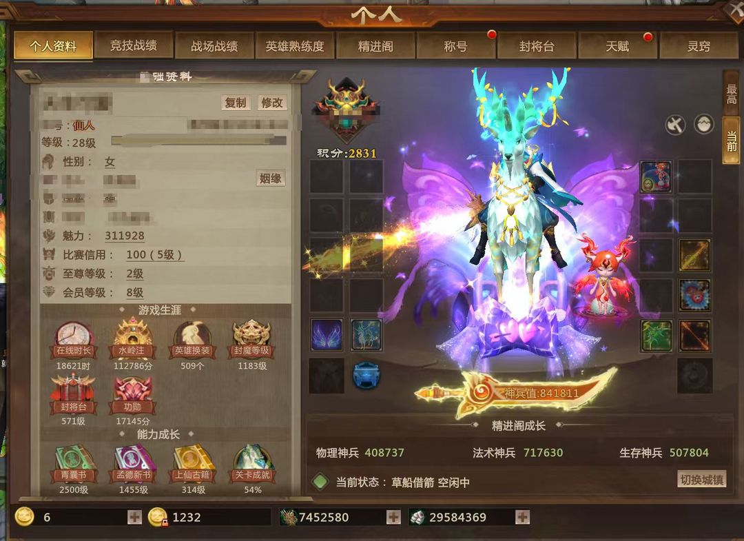 装备描述:四年少*(马良 +小乔++吕布+韩当) +鹿鸣 幻神 5金星海 熊猫转转三傻 1.6E士兵 2.2E兵粮痛快吃鸡,便宜出租,上号器自动登录梦平台——点击开始游戏——进入游戏——出现二级密码后——按F9——鼠标迅速输入1234(1234跟号主财产无关)——二级锁解开——上号器关闭游戏——再次点击开始游戏,网页端租号玩更便宜 ✨ 小蝶的特别推荐: 这不仅仅是一个游戏账号,更是我精心打理的心血结晶。每一个武将,每一个皮肤,都是我的最爱。希望在这个美丽的三国世界里,您也能找到属于自己的欢乐和感动。