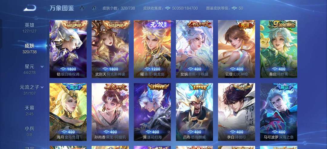 曜新无双器灵螭龙剑武则天倪克斯神谕铠银白咏叹调等20+传说皮