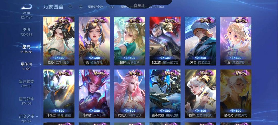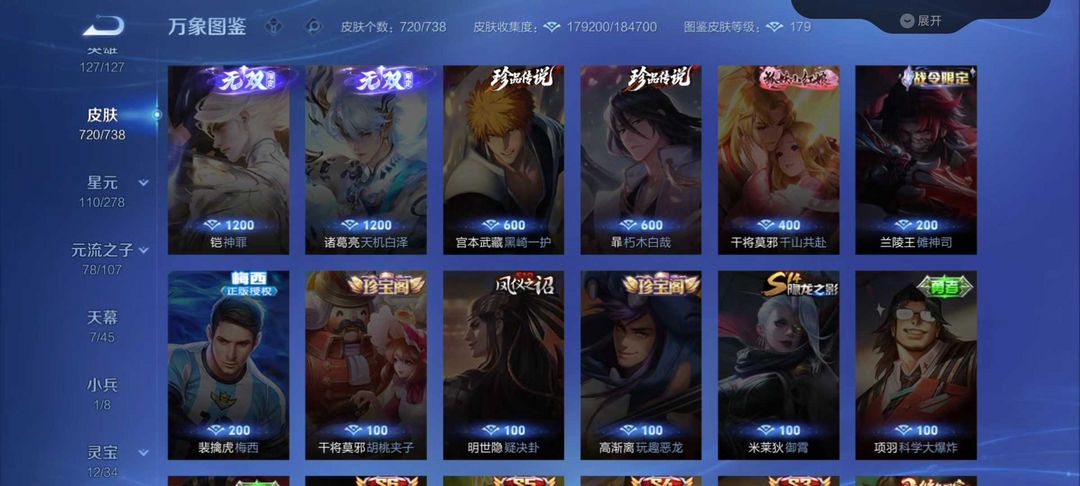 无双贵十丶720皮肤 满典藏丶满传说缺干将丶满珍品无双丶满无双缺一丶满珍品传说缺2 11套星