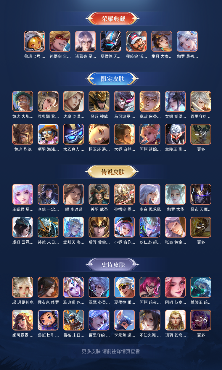 装备描述:7典藏皮肤,武则天,李逍遥,海洋之心末日机甲天魔缭乱遇见胡璇地狱之眼