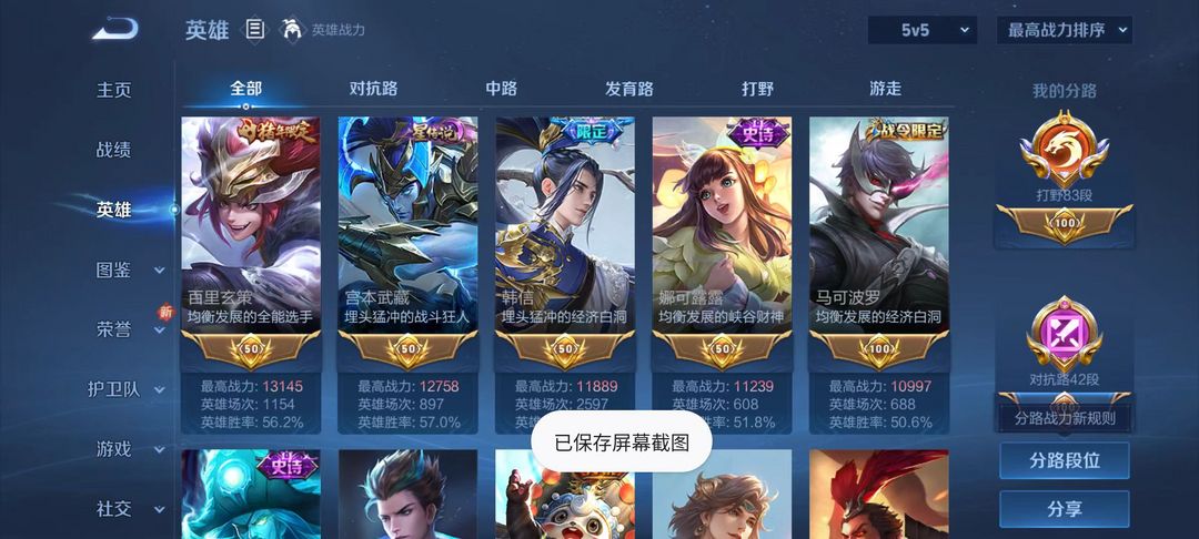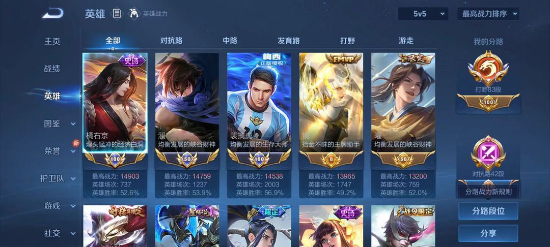 安卓q区 83段省标打野⭐百星历史1.4W三国服梅西老虎⭐国服1.49橘右京⭐国服1.47澜⭐野王带
