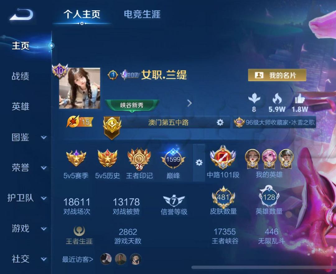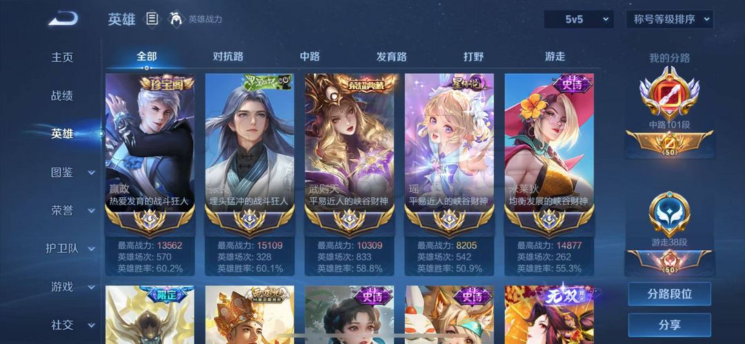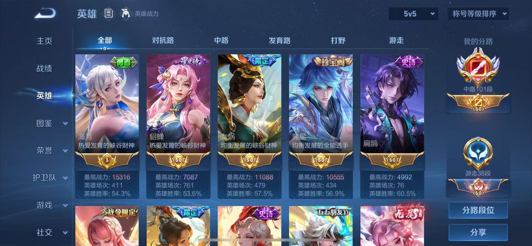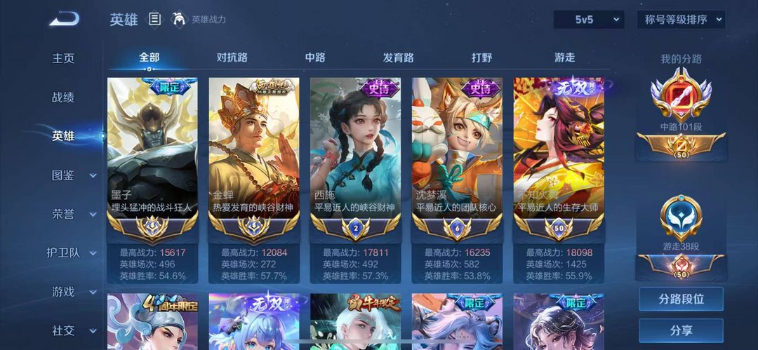 禁巅峰✨101段中路✨历史大国服瑶武则天等✨历史14个国服✨5典藏4无双5珍品/传说天幕
