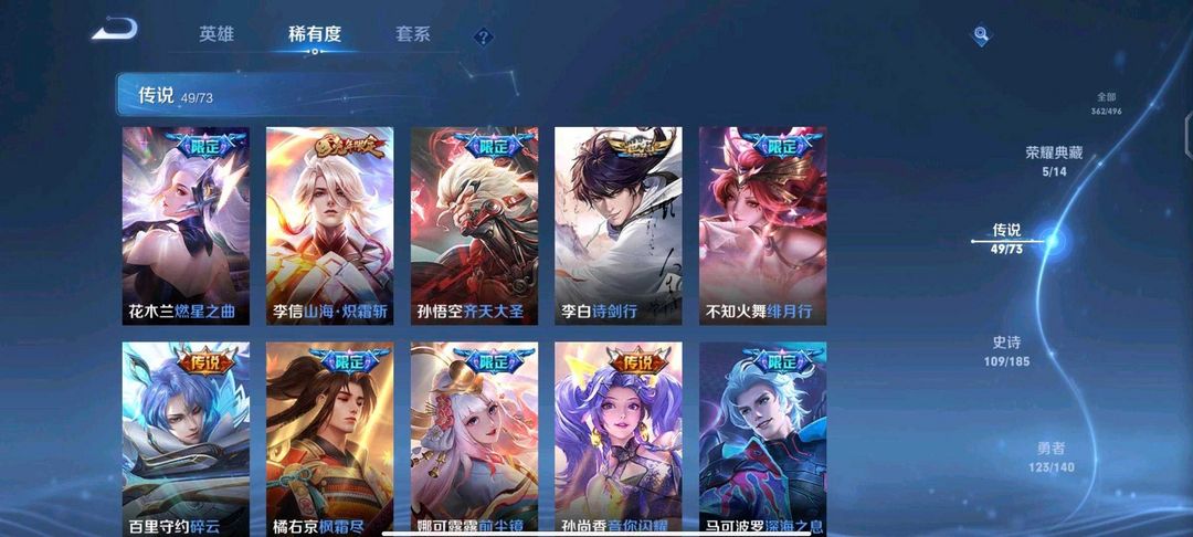 49传说 5典藏 362皮 九霄 高达虎年一套 祈愿瑶 鸣剑 白虎 神启诗剑 燃曲兔年李信 齐天大圣