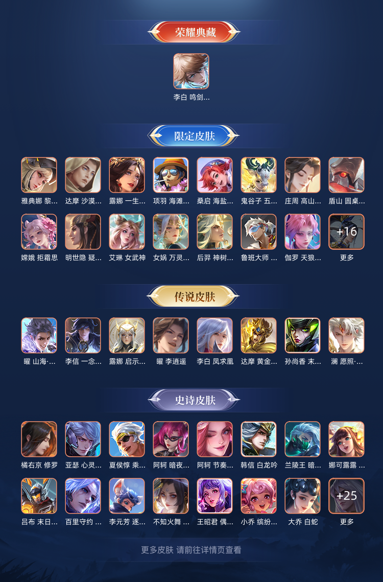 高质量V7号|300+皮肤|鸣剑曳影|炽阳神光|诡秘之主|李逍遥|苍雷引|游龙青影|末日机甲|超多限