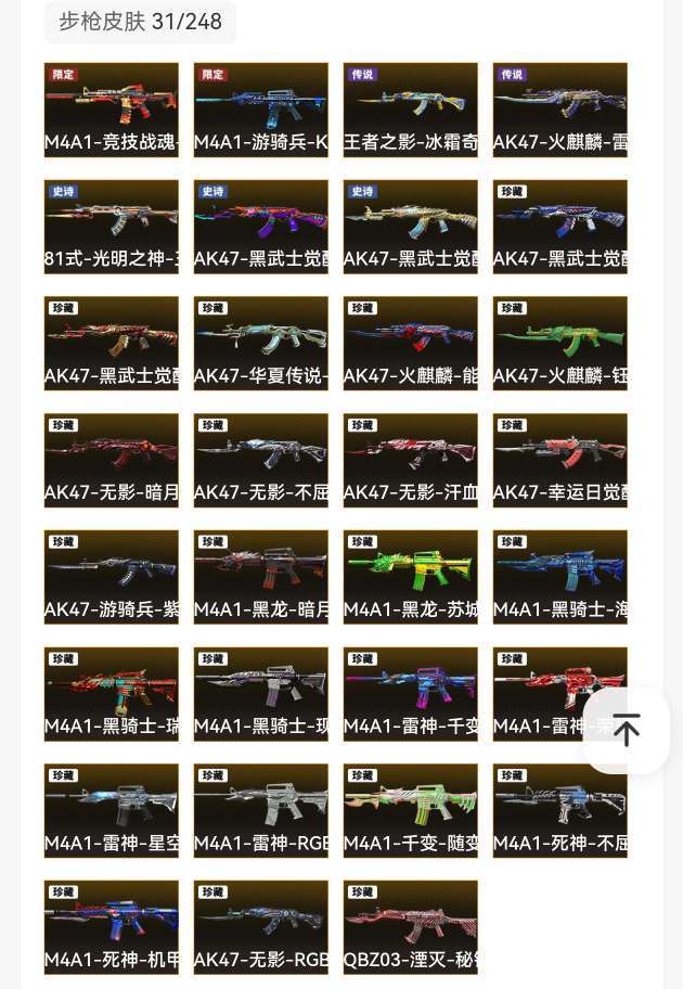 安q区,m4游骑兵,王幻,王神,王烈,王怒等,王击,蝴蝶,两把cop。游骑兵