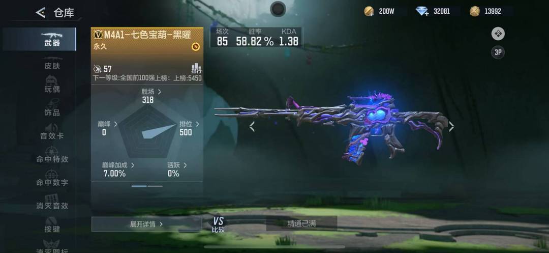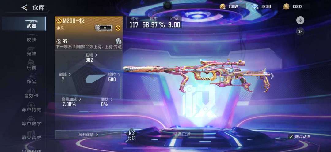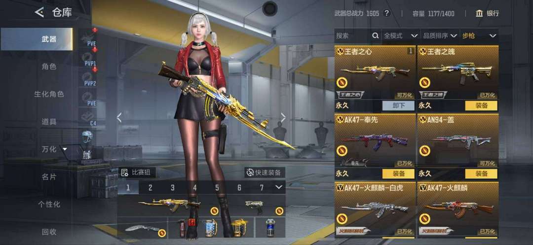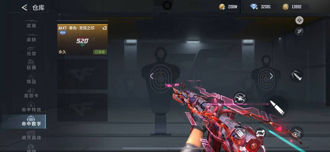 装备描述:王心王魄,七色宝葫-黑耀(带命中数字)M200-权,AK47奉先(带音效卡光效命中数字)AN94盖