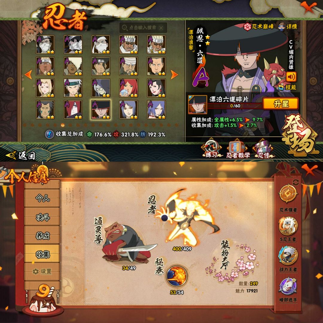2900万战力✨400个忍者✨50S✨97A✨点卷A齐全✨多忍法帖忍者✨多328忍者✨98通灵齐全