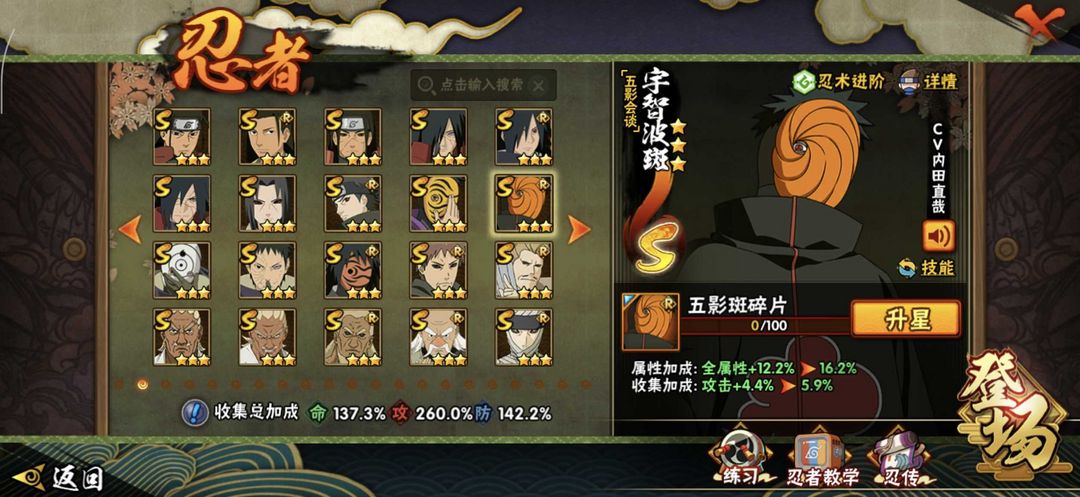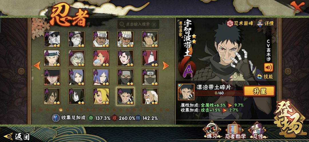 装备描述:1800W战46S+62A⚡蝎绯流琥⚡须佐卡卡西⚡大筒木桃式⚡死门凯⚡三忍自来也⚡红夜面具⚡天道超⚡漂泊带土⚡