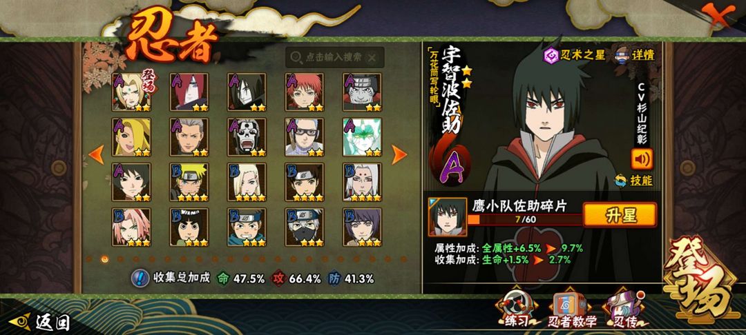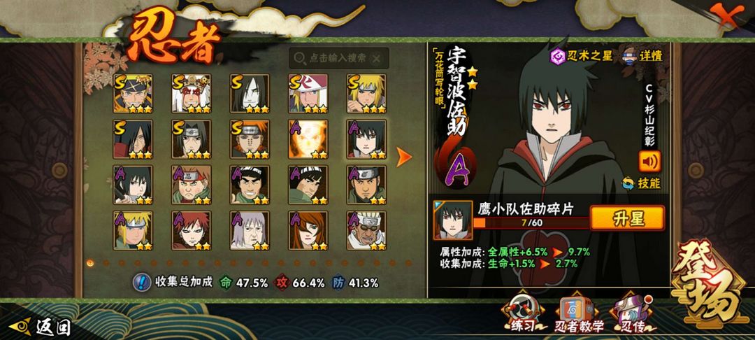 装备描述:秽土水门秽土班侠隐纲手仙人巳月长十郎秽土迪达拉青年长门青年水门晓蛇黑土须佐佐助万花筒佐助金鸣