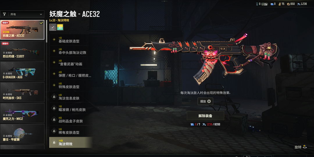 ⑤级妖魔之触ACE✅湮灭M762✅雪国风光M4✅标准猎手AKM✅大理石SLR✅镀金SKS✅粉梦长眠M