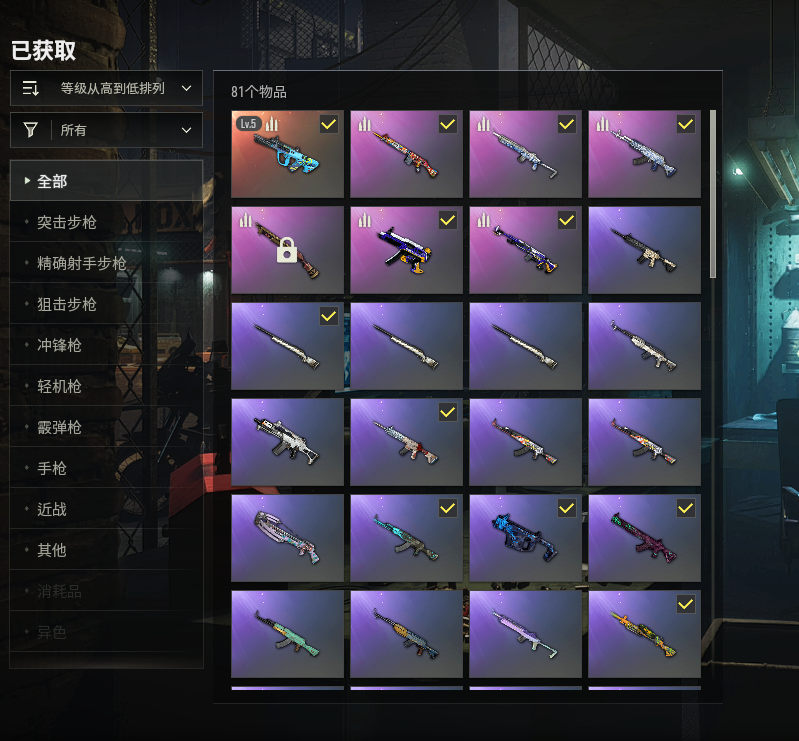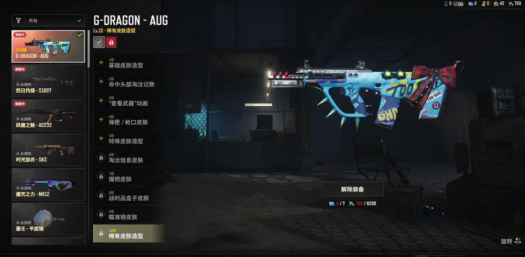 ⑤级联名AUG✅青花之力M762✅雪国风光M4✅灵魂枷锁AKM✅漫彩四溢SLR✅幸运骑