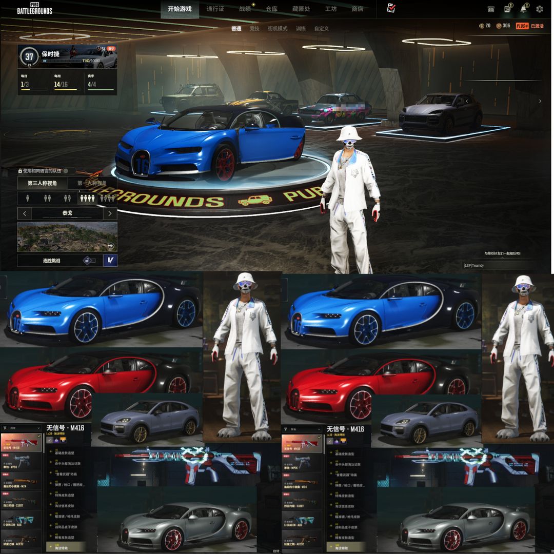 蓝红灰豪华布加迪超跑+保时捷卡宴⑩级无信号M416可排⚛️白渔夫帽滑雪镜金面