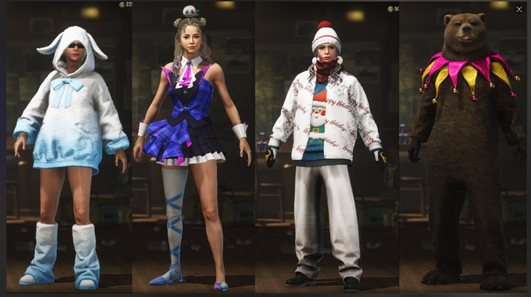 装备描述:剪刀门迈凯伦✌满级黑暗深渊M762✌彩色烟雾弹✌大金牙✌老爷车✌发光鼻✌圣诞之子套✌小黄鸭套✌魔力甜心套✌杂技熊套✌连帽卫衣套✌小兔学院套装✌电磁背包✌大量皮肤道具