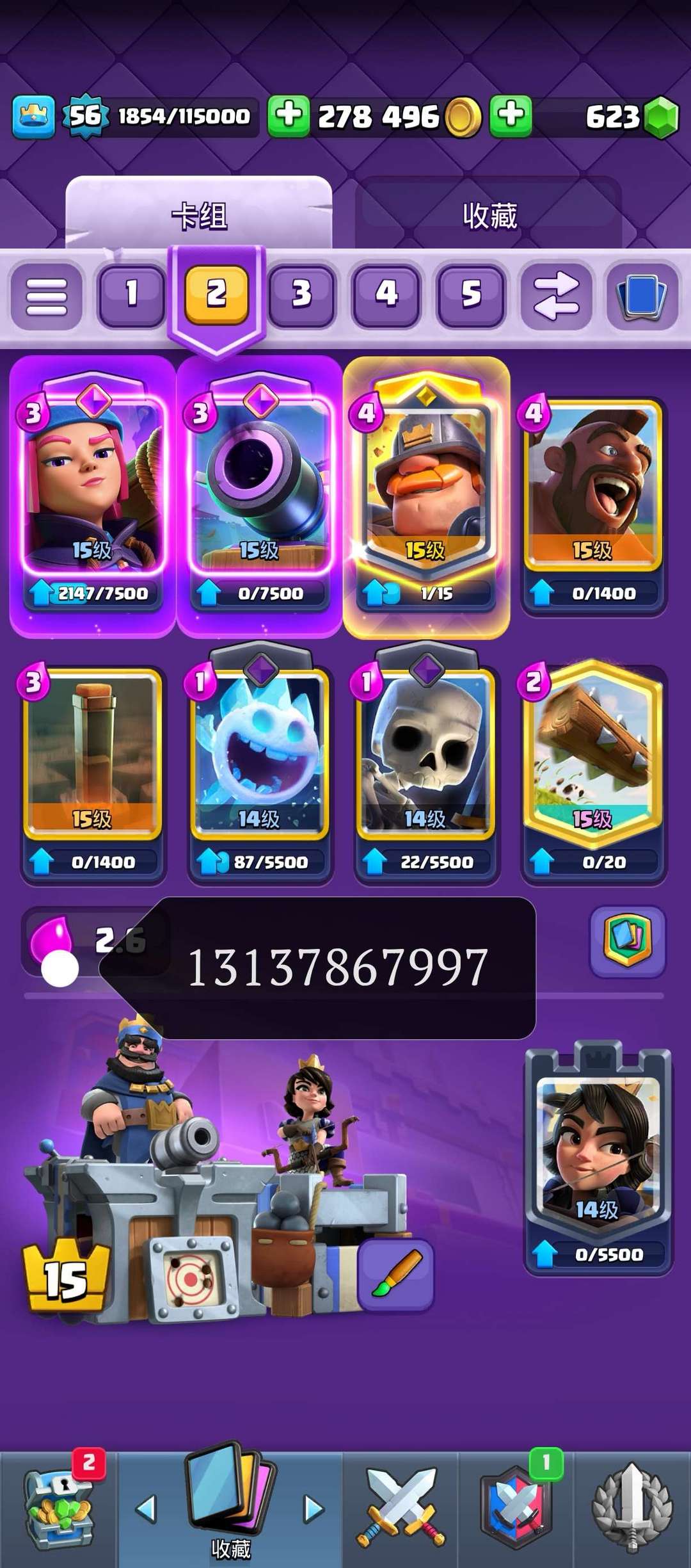 杯数 15000, 合合奇兵 3600,近 20张卡牌觉醒,烟花猪卡组全满级,看图加 V