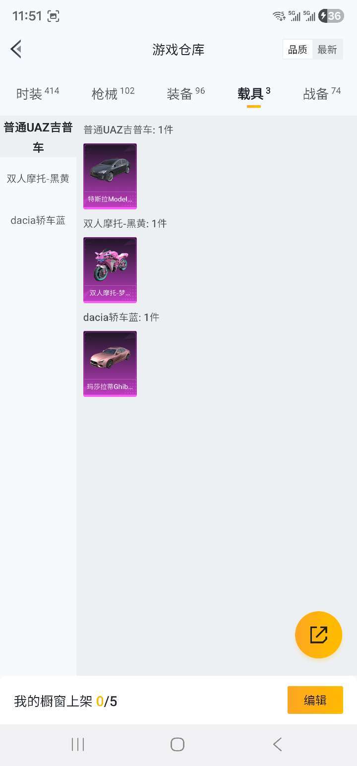 装备描述:s1赛季衣服,青龙套装,麒麟套装,大圣套装,3级的火箭少女m4和摩托皮肤,特斯拉和玛莎拉蒂