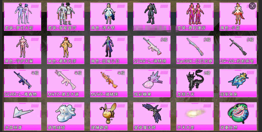 装备描述:>>>>>>毁号,涉及毁坏虚拟财产罪及计算机安全罪,请文明游戏素质游戏,让我们共建美好租号平台>>>>>> 本游戏账号:荣耀皇冠Ⅱ段位,粉枪数量9个,粉装数量10套,优质装备有: 突击步枪(GROZA-彩虹符号,GROZA-海盐豹豹,GROZA-影袭,Mk47-妙红点点,Mk47-乌木金纹,蜜獾-天降萌叽,蜜獾-鸡智如我,蜜獾-娇憨猪猪,蜜獾-垂柳戏鸭,蜜獾-精灵梦叶罗丽,AKM-涂鸦街区,AKM-梦之光华,AKM-破晓战魂,AKM-生命誓言,AKM-环太平洋,AKM-彩虹符号,AKM-胡桃卫兵,AKM-奇异狩猎者,Famas-镜域双华,Famas-墨龙九天,Famas-乌木金纹,SCAR-L-红色方程式,SCAR-L-锦绣绵绵等,供您畅选,感受良好游戏体验! 注意事项: A.游戏过程中请不要恶意挂机或者不文明发言 B.恶意挂机、顶号等行为将被拉黑无法再次下单 C.进入游戏后中途请勿退出登陆,否则无法再次上号 D.部分账号由于异地登录可能会出现密码错误提示,通常再尝试5-6次后可上号 |||||||||喜欢本账号请点 ☆收藏☆ 方便下次租用,谢谢光临惠顾|||||||||