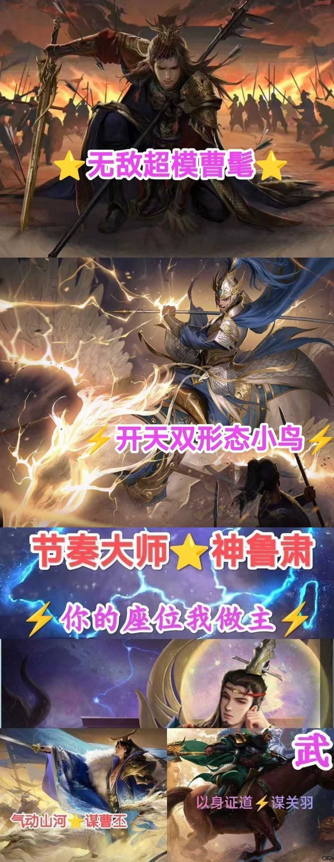 ♏全神新司马昭♒8巨头大将军♌曹髦谋曹丕♉新双形态文鸯♍双形态神郭嘉♐回廊谋关羽♉回廊神荀彧