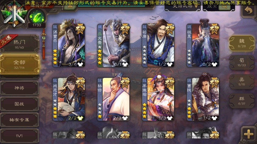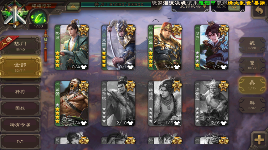 大将军新皮回廊杜预【势于吉】动神荀彧-文鸯-动谋曹丕-动界徐盛大宝动谋诸葛亮谋关羽灵魂歌王留赞神吕布