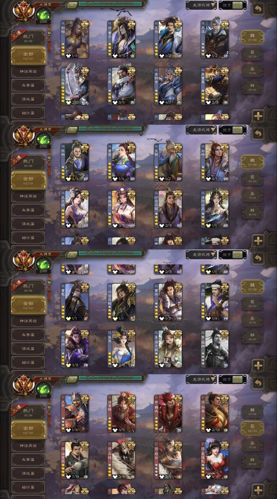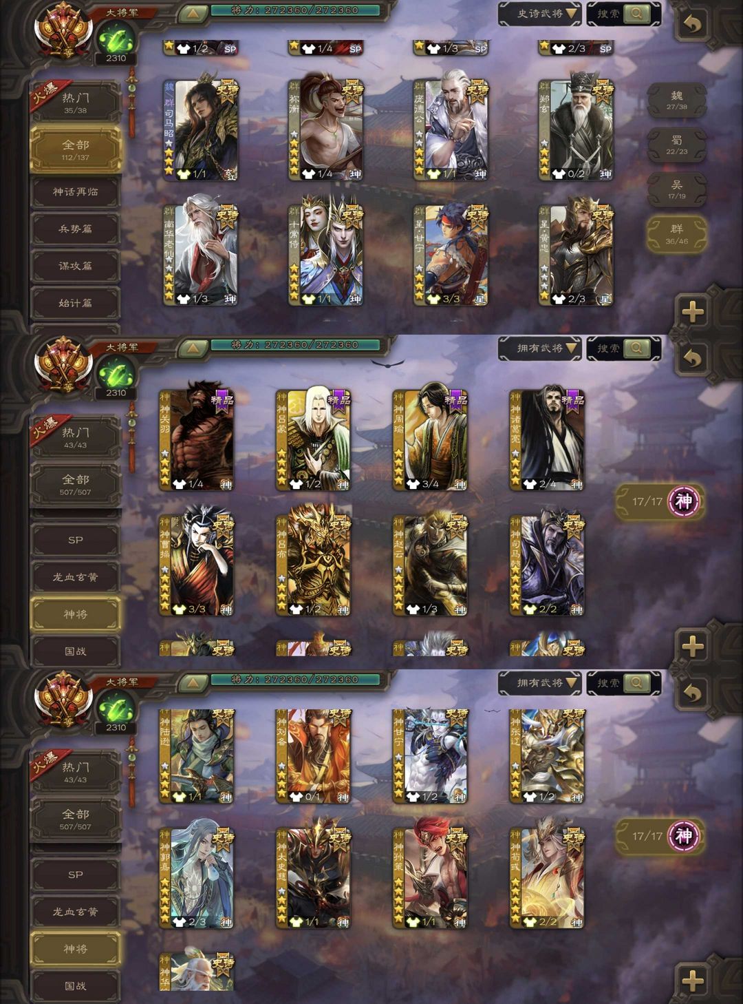 有卡/vip22黑金排面/崔芙/枭龙破渊曹髦/圣垂千古谋关羽/劈山撼海张奋/势魏延/势于吉/手办三娘
