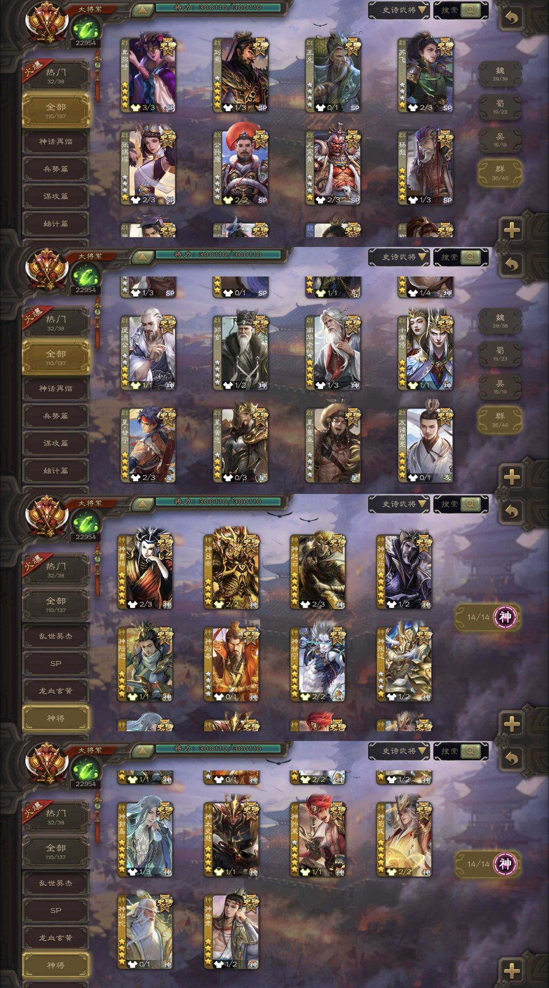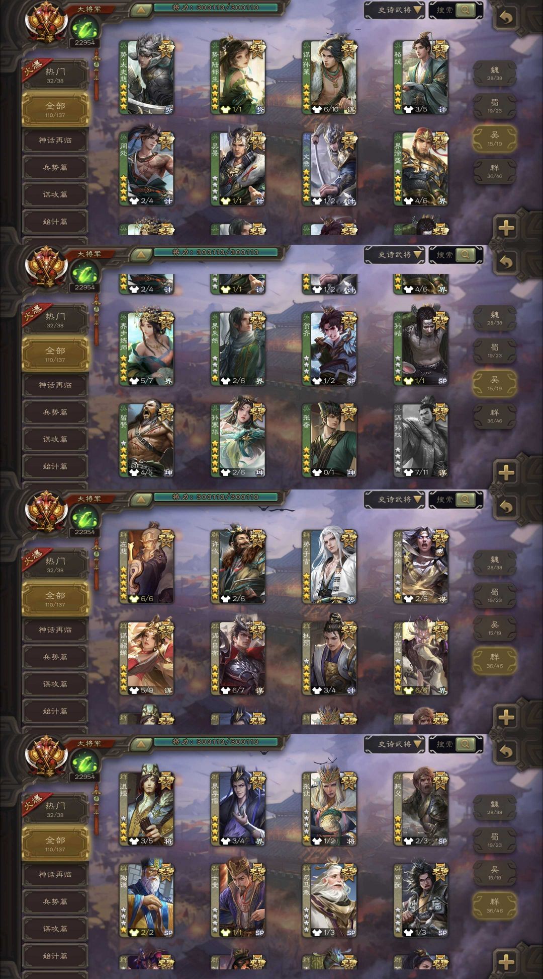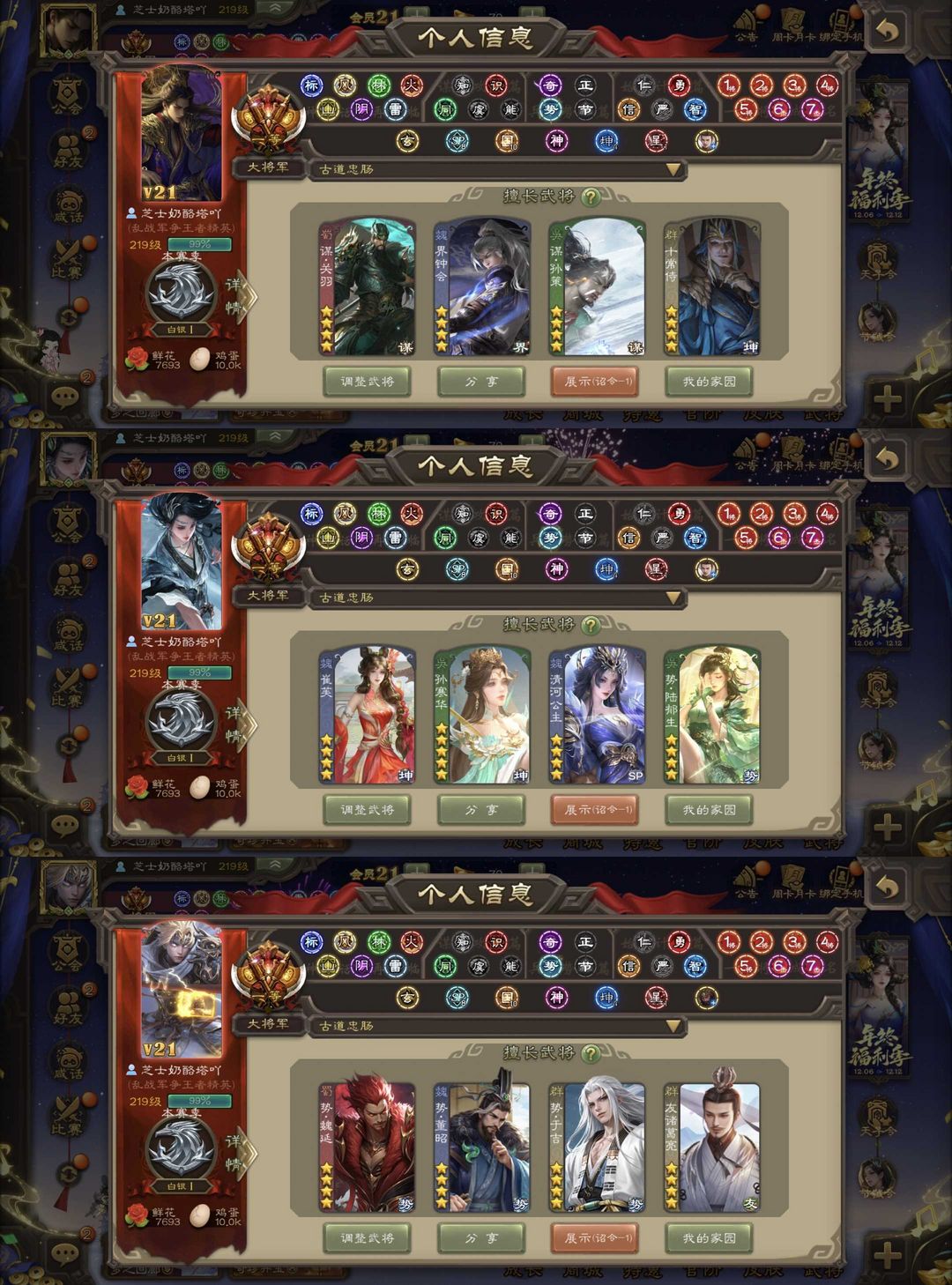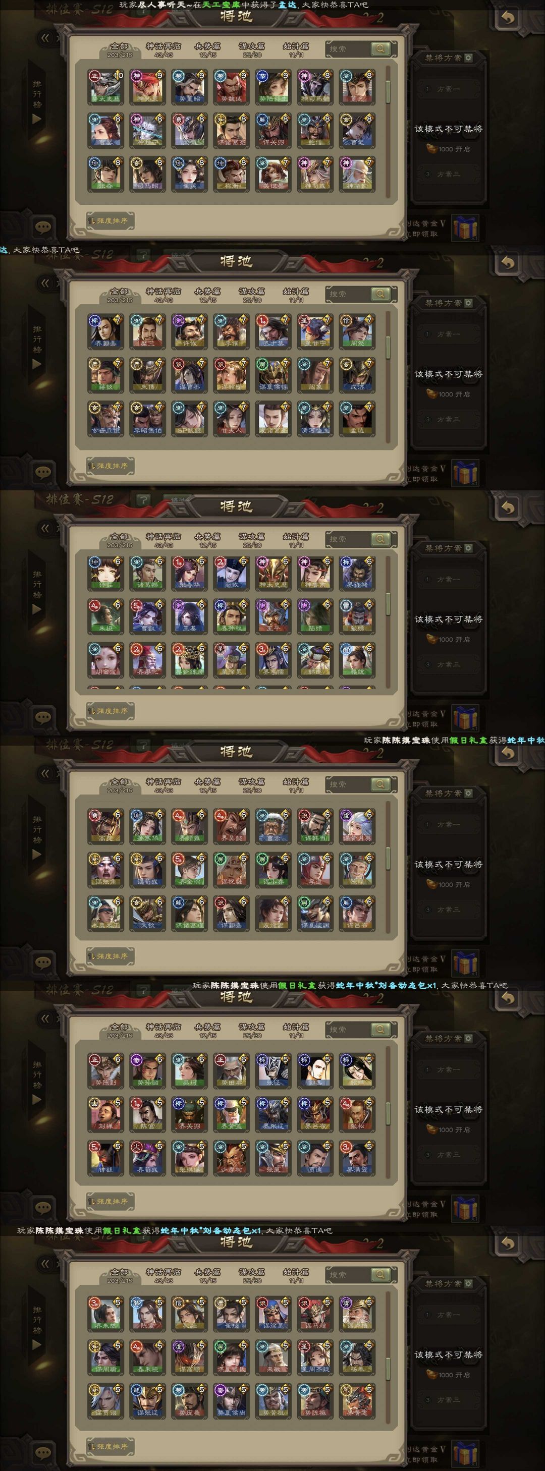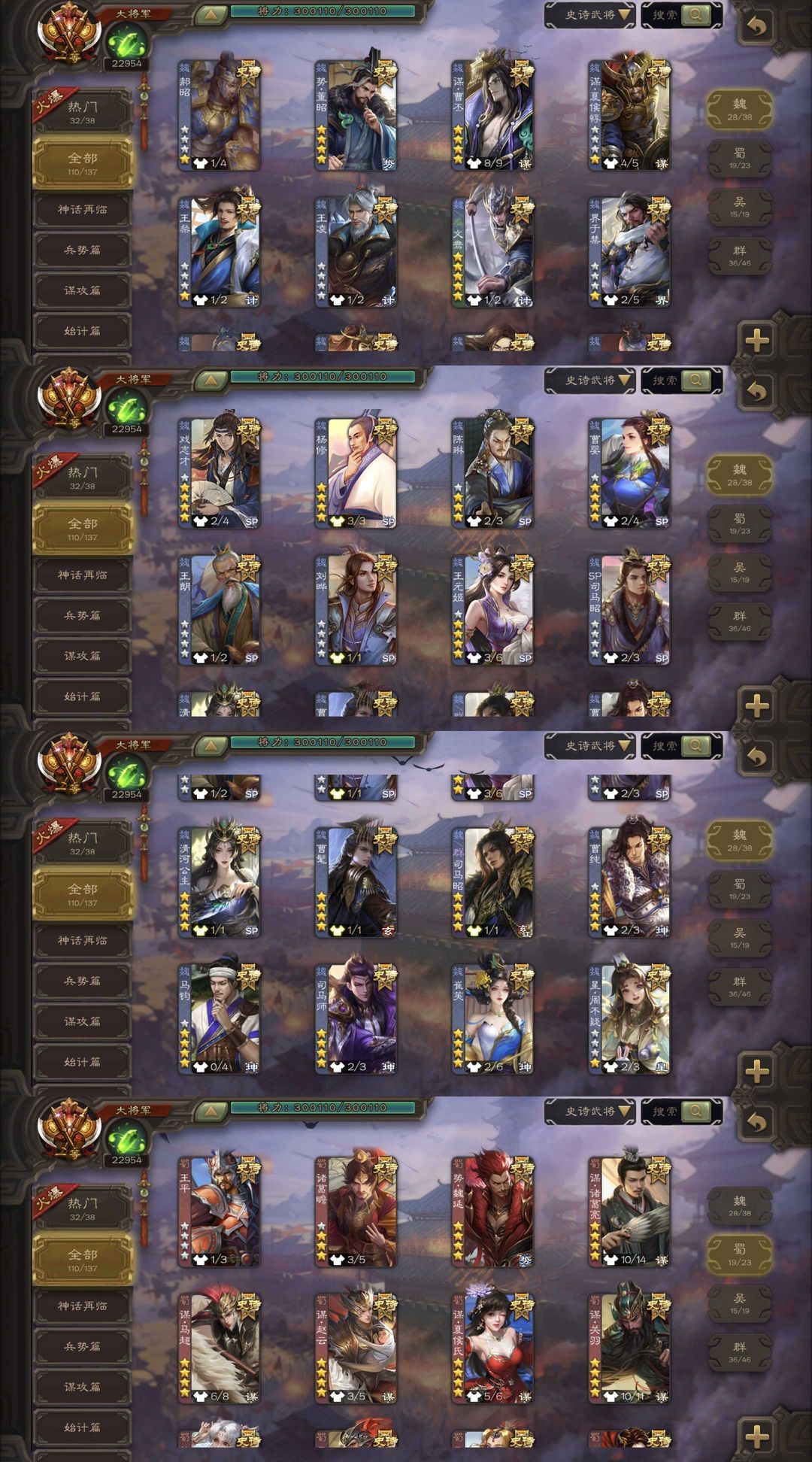 有卡/伪全扩/崔芙/双形态曹髦/势魏延/至尊谋关羽/势于吉/势董昭/友诸葛/谋吕布/排位204近乎满