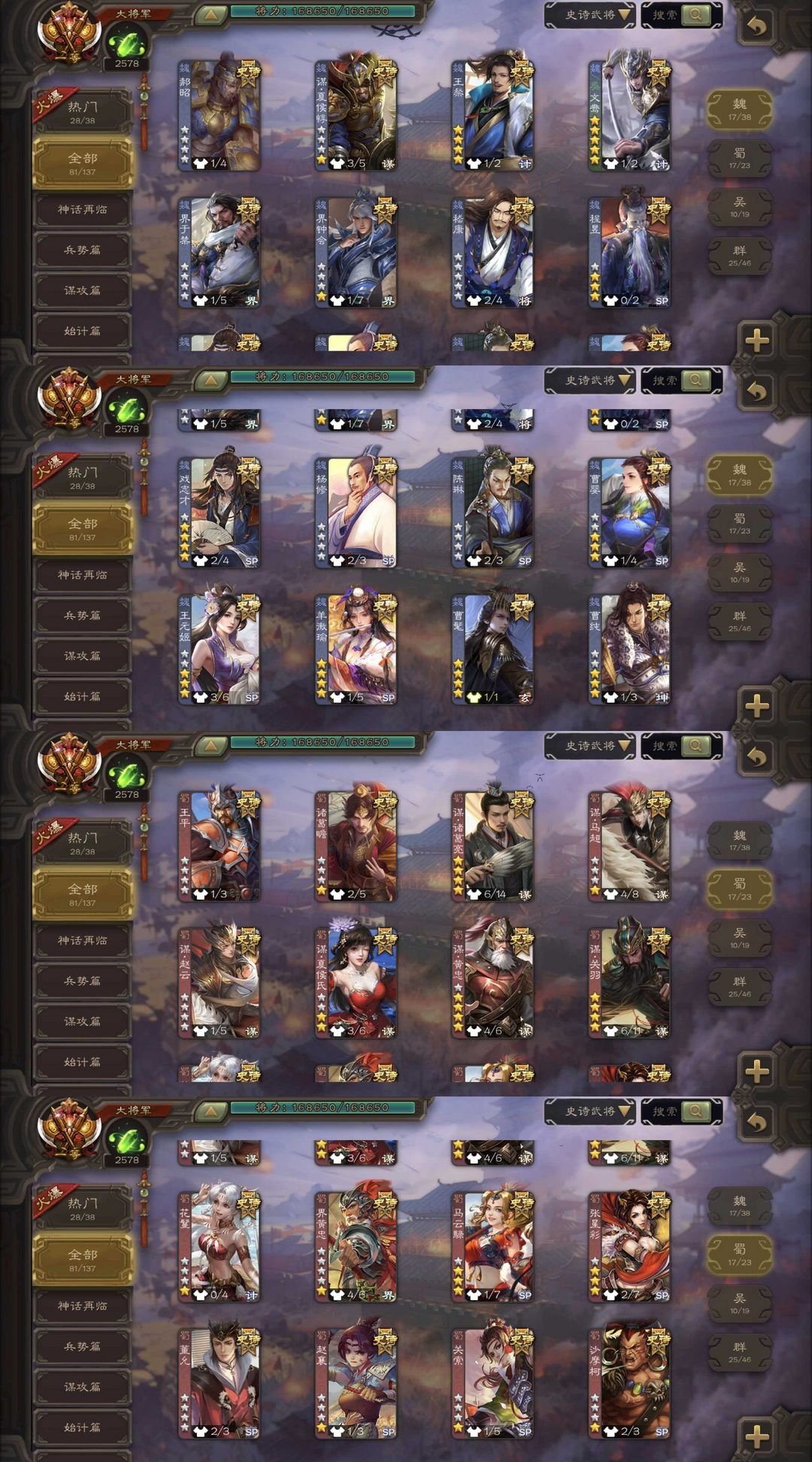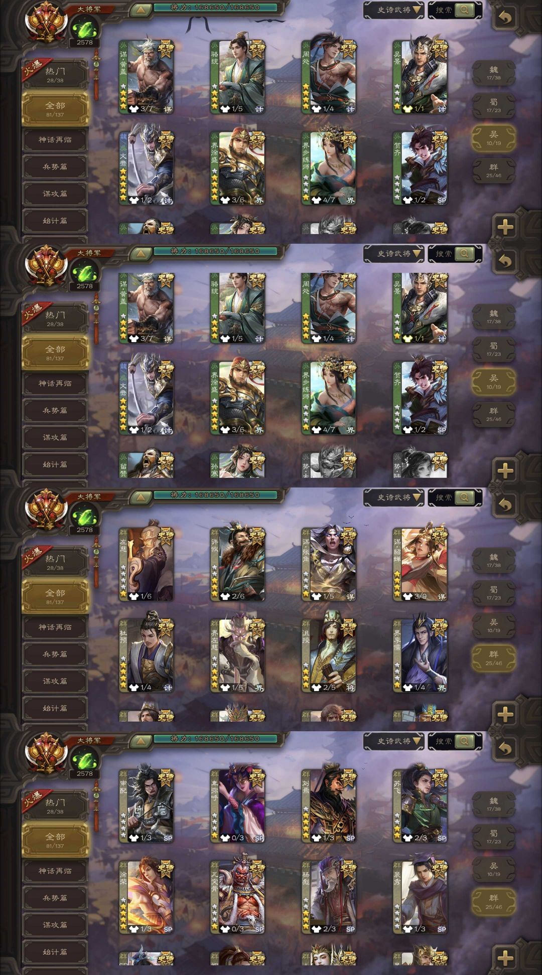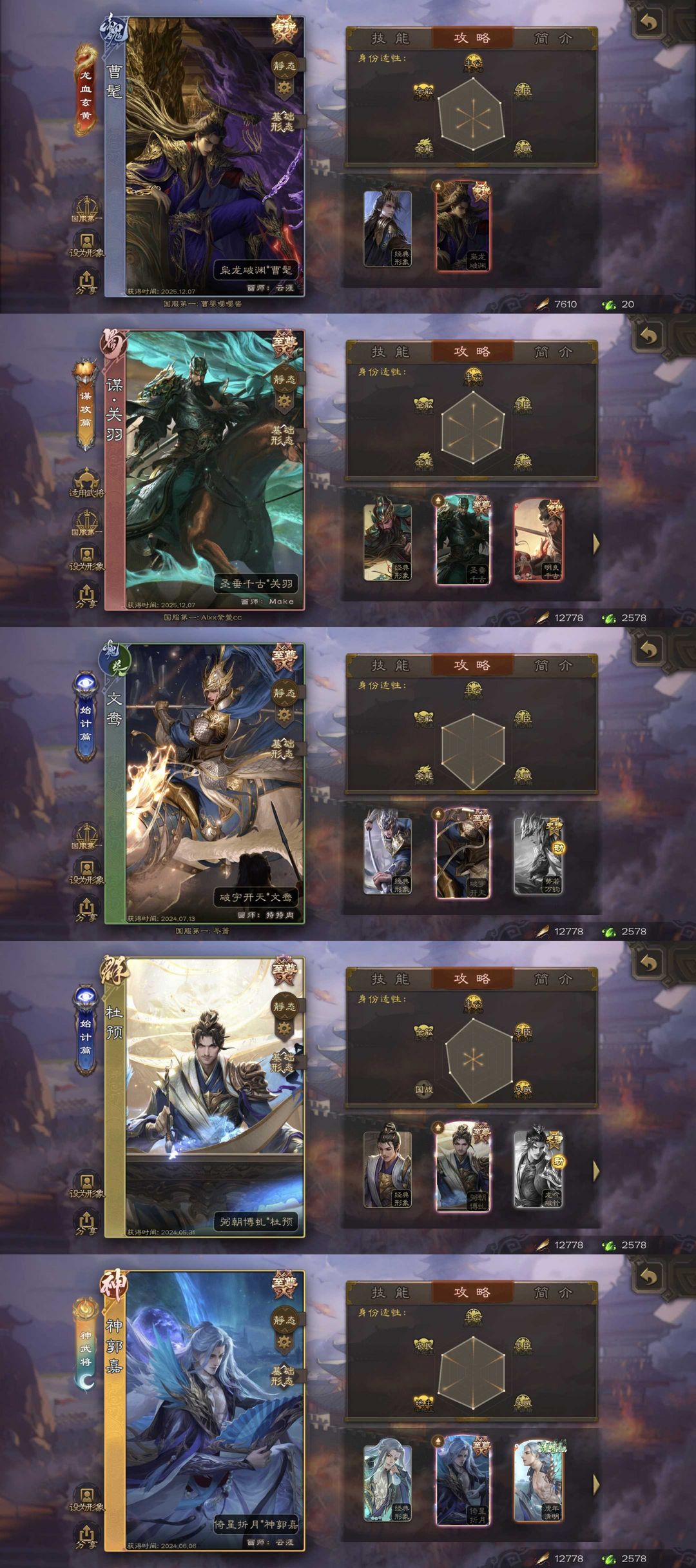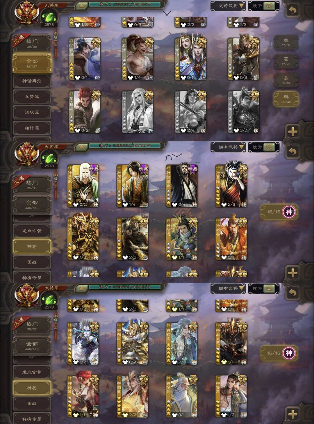 有卡(缺换将)/枭龙破渊曹髦/圣垂千古谋关羽/全热门大将军/至臻文鸯/神鲁肃/回廊徐荣/动刘焉