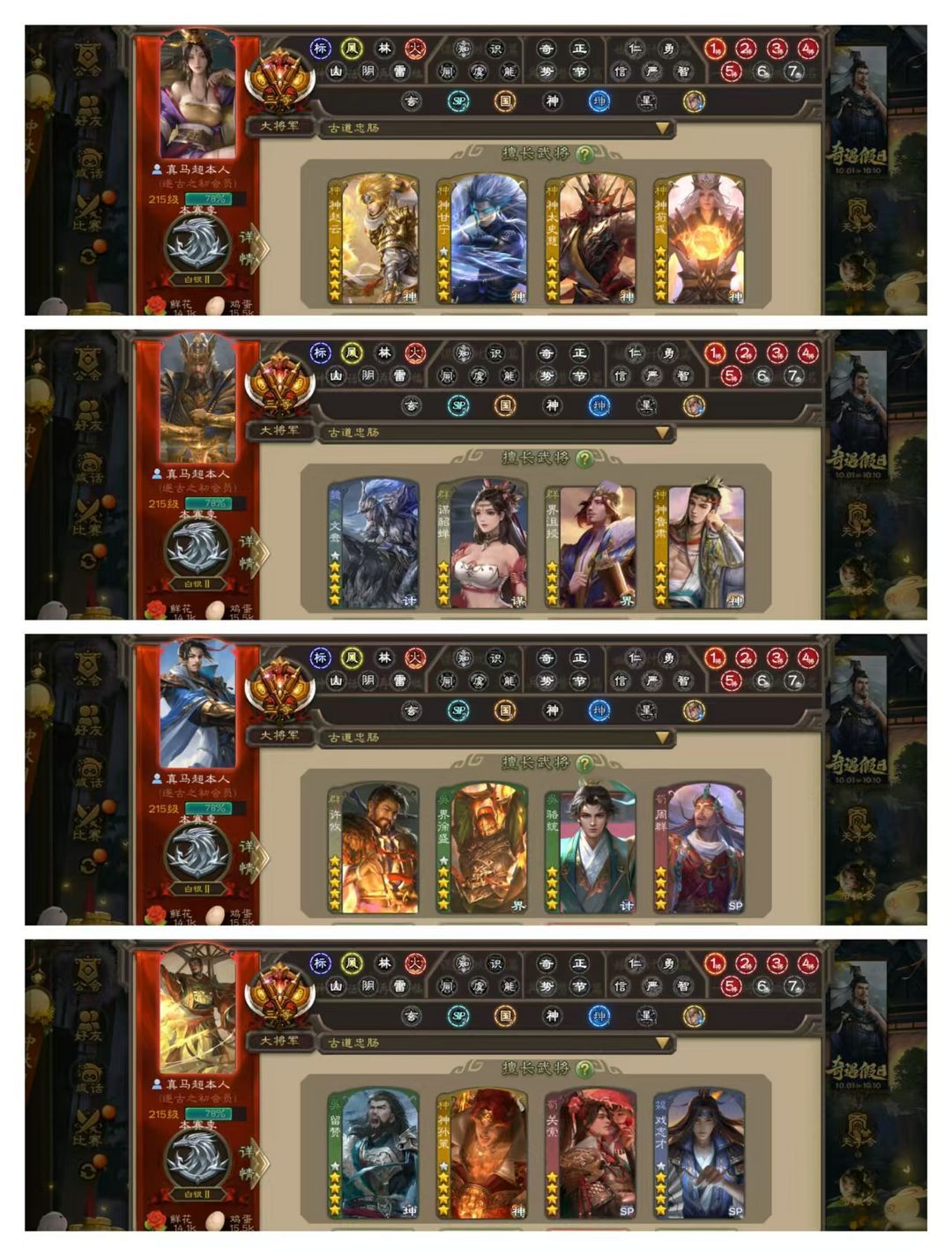 限制: 撤单率<19%才可租用此帐号装备描述:官方三等大将军,有卡,VIP12! 5五星炎龙:回廊动许攸,动神赵云! 15四星玉龙:回廊动神荀彧,回廊动神孙策,回廊动文鸯,回廊动周群,动谋貂蝉动神甘宁动留赞动戏志才动关索,金骆统,笮融孙寒华! 46史诗武将,回廊动界徐盛,动谋曹操动界钟会动王璨,金谋夏侯氏,神鲁肃神太史慈界沮授杜预界左慈南华老仙等! 30动皮75金皮185国战皮肤!
