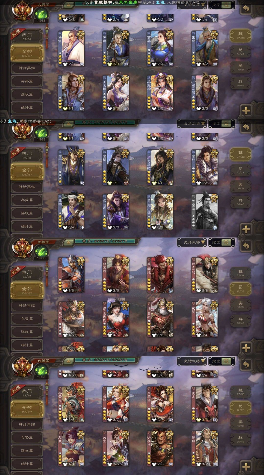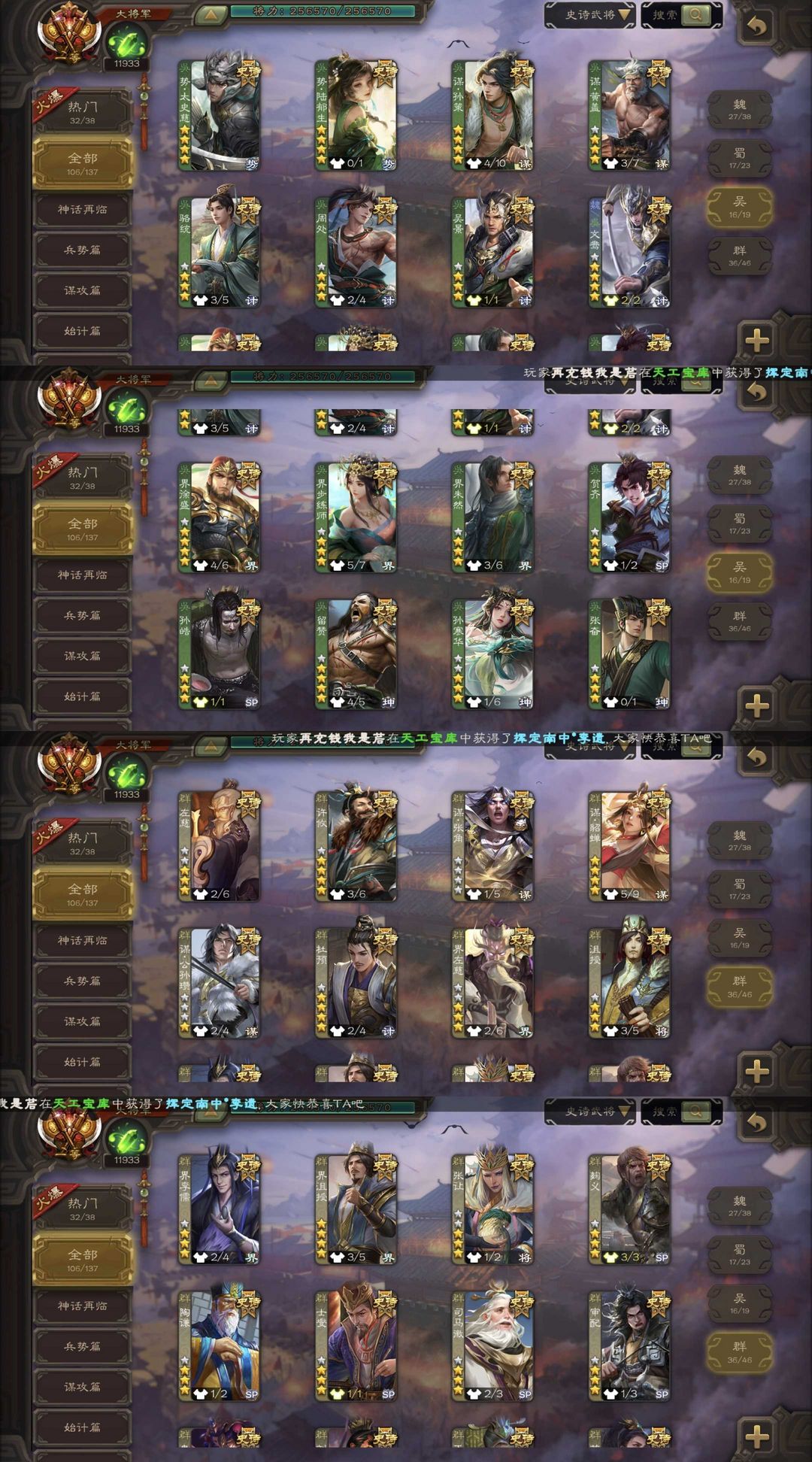 有卡(缺换将)/枭龙破渊曹髦/操刀必割界徐盛/势魏延/傲绝凌顶谋孙策/回廊羊徽瑜/刘焉