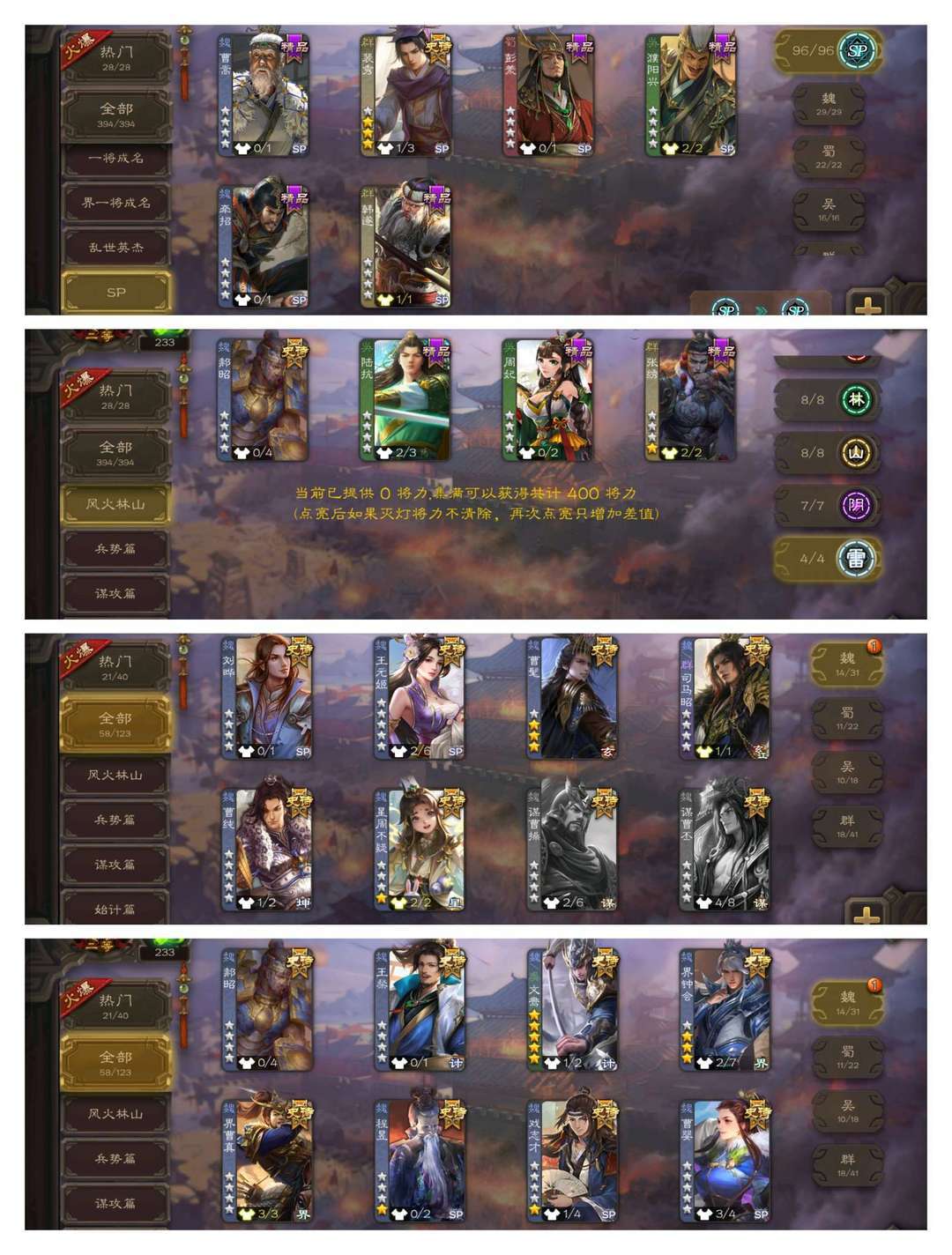 有卡【58史诗二等大将军】动神荀彧动文鸯动刘焉动司马昭动谋关羽动谋诸葛亮动孙寒华动神郭嘉*曹髦神鲁肃