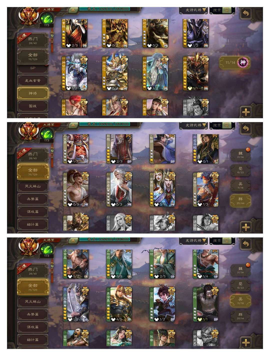 有卡【76史诗二等大将军】双形态动神郭嘉*动刘焉动文鸯动神孙策动孙寒华动谋关羽动杨彪*曹髦张奋十常侍