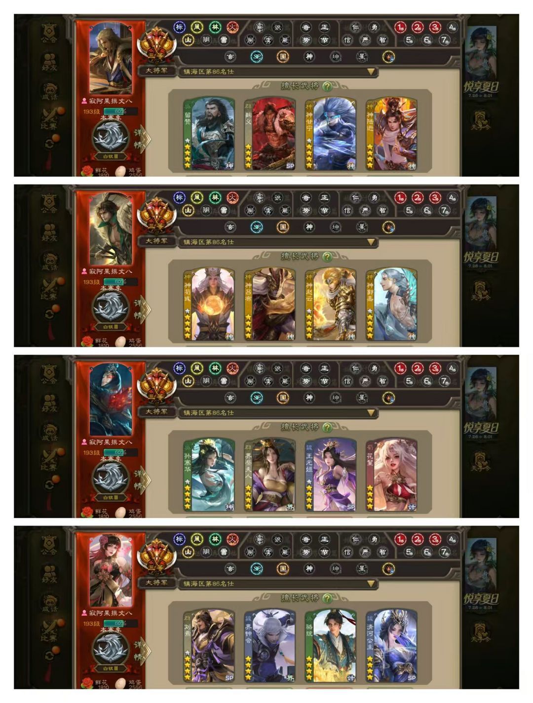 限制: 撤单率<19%才可租用此帐号装备描述:官方三等大将军,有卡,VIP10! 17四星玉龙:回廊动刘焉,奇门动孙寒华,回廊动神荀彧,回廊动王元姬,回廊动聚义,冠绝天下动神吕布,动神郭嘉动神甘宁动神赵云动骆统动界钟会动清河公主动留赞动神陆逊动花鬘,郭女王! 40史诗武将:动界李儒动戏志才,金界徐盛,界沮授曹婴庞德公星董卓! 99排位武将,41动皮102金皮175国战皮肤!