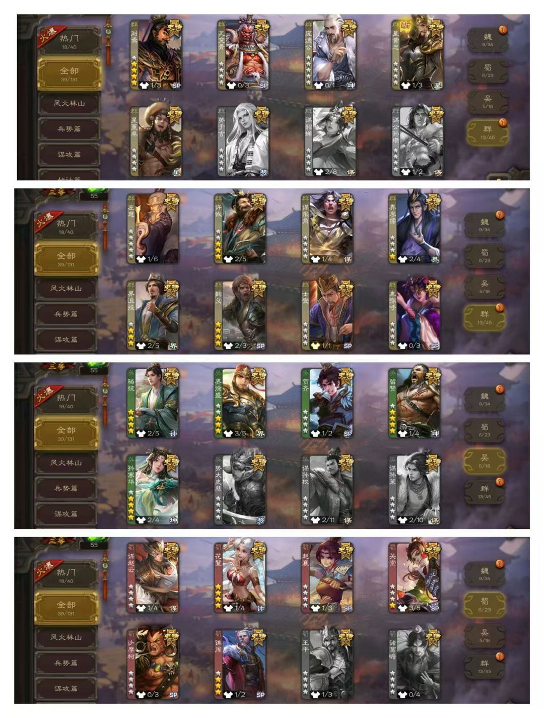 有卡【40史诗大将军】回廊动刘焉动神荀彧动孙寒华动聚义*动神郭嘉动神甘宁动骆统动花鬘*界沮授