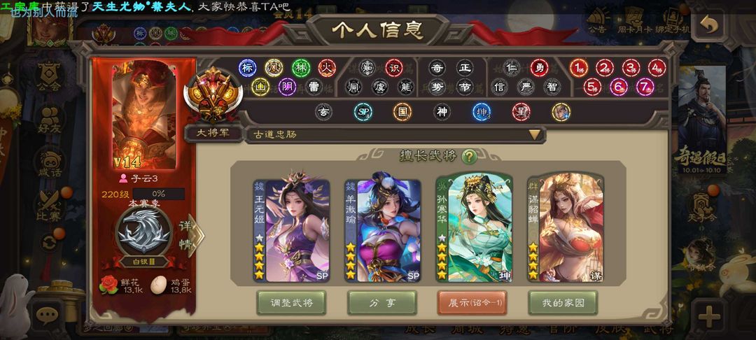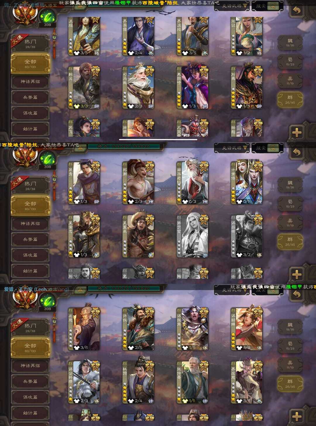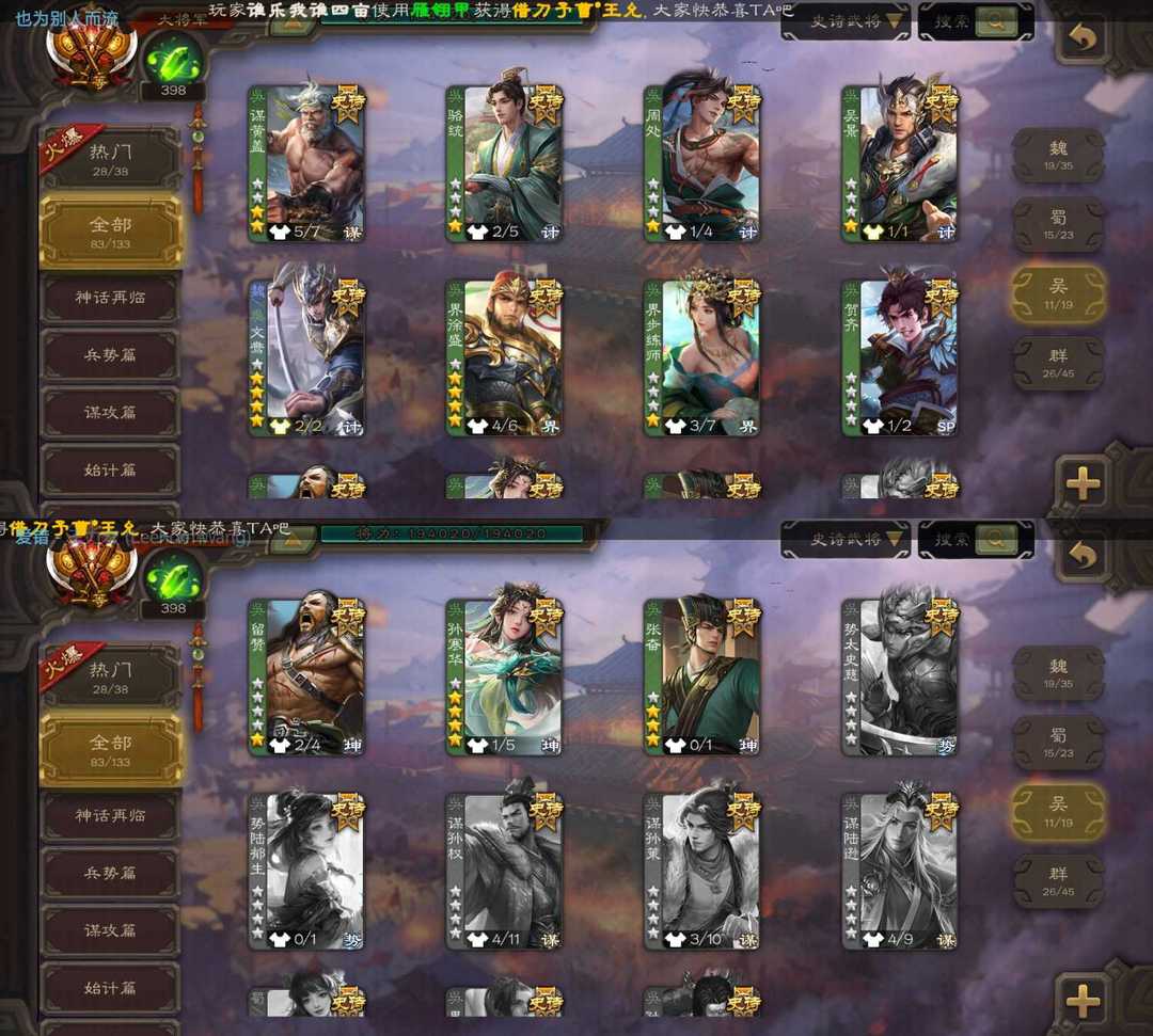 限制: 租号1次及以上 |装备描述:魏:动态谋曹丕 双形态界钟会 动态戏志才 羊微瑜 曹髦 界于禁 蜀:诸葛瞻 谋马超 谋赵云 谋关羽 界黄忠 张星彩 赵襄 关索 吴:谋黄盖 界徐盛 动态文鸯 周处 贺齐 动态孙寒华 张奋 群:许攸 双形态谋貂蝉 双形态杜预 张让 动态刘焉 十常侍 张仲景 对局逃跑会封号影响租客游戏体验 另祝对局不逃跑的玩家新年发发发