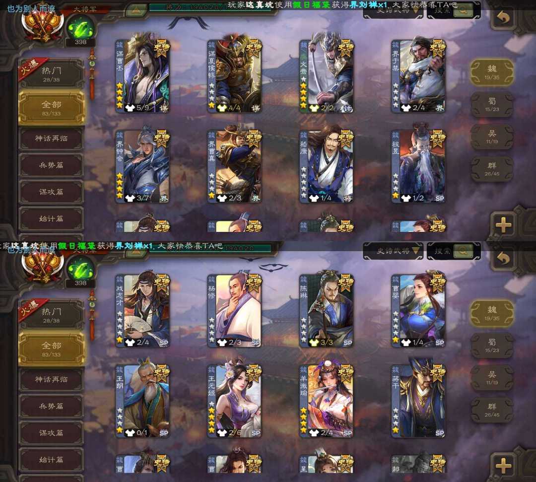 【过时不下】⚡动态文鸯⚡动态神郭嘉⚡动态神甘宁⚡动态神荀彧⚡动态界钟会⚡动态刘焉⚡动态谋貂蝉⚡十常侍