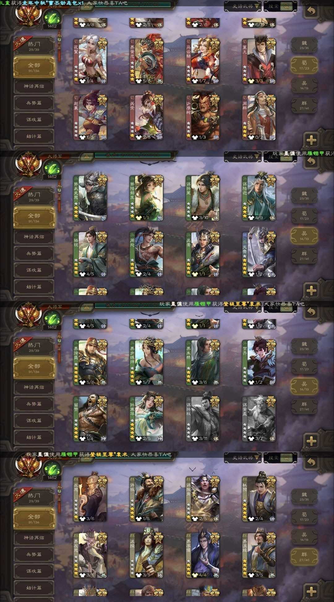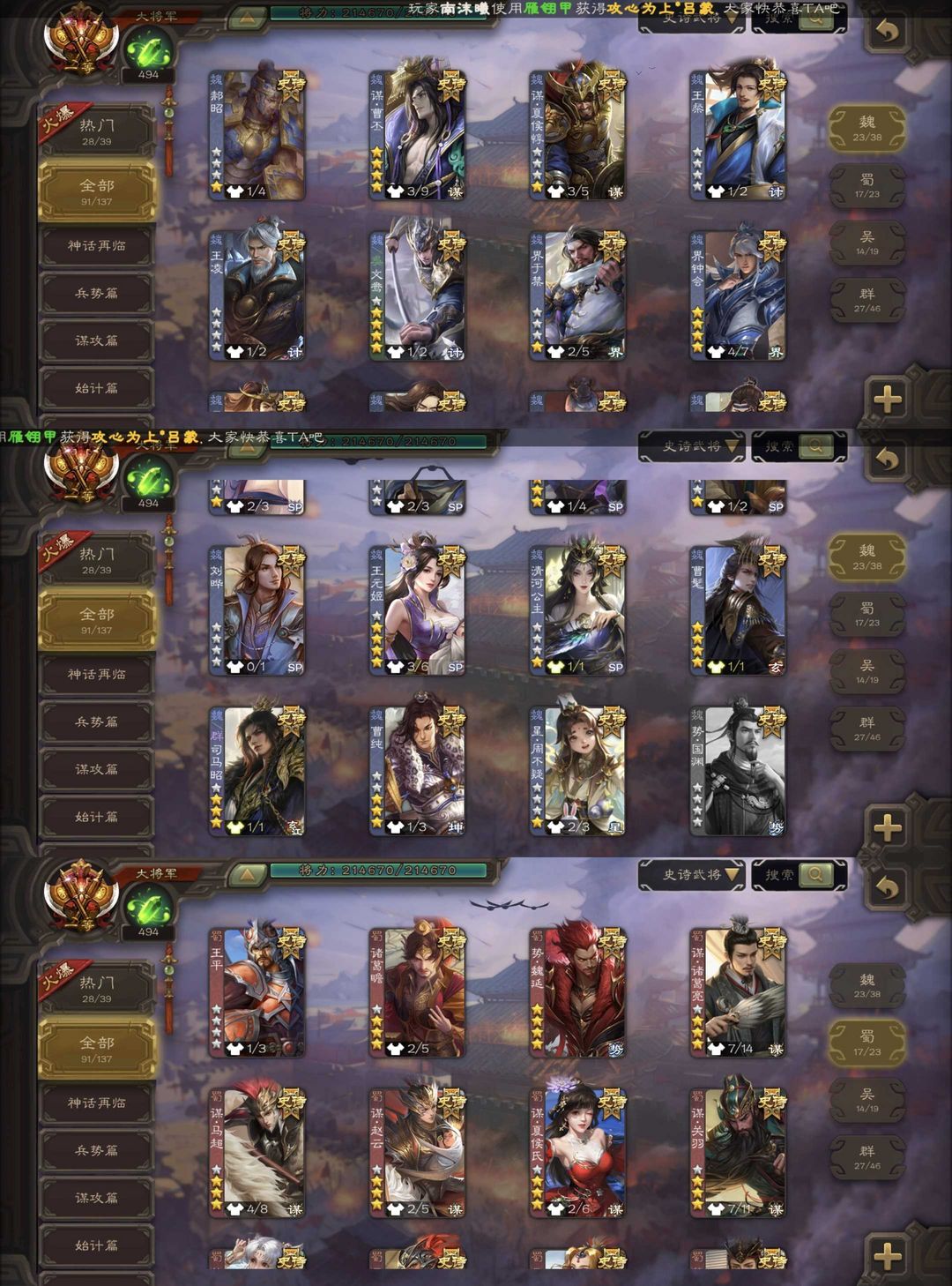 有卡(缺换将)全热门/龙血玄黄曹髦/满至臻极品排面/势魏延/傲绝凌顶谋孙策/势太史慈/龙兴蜀川刘焉