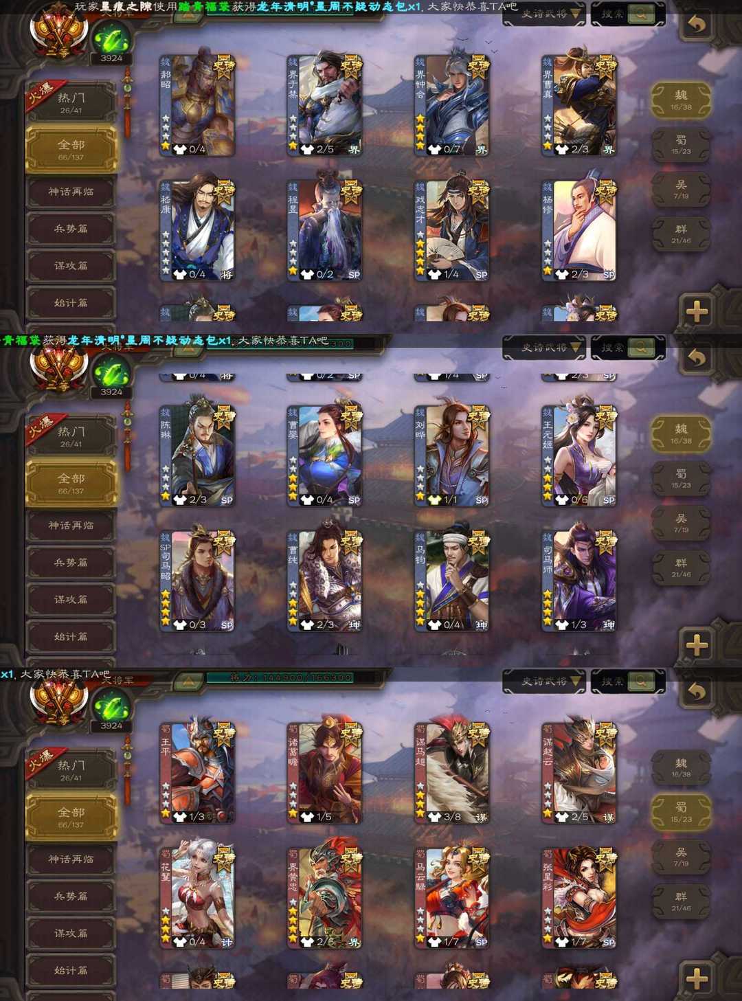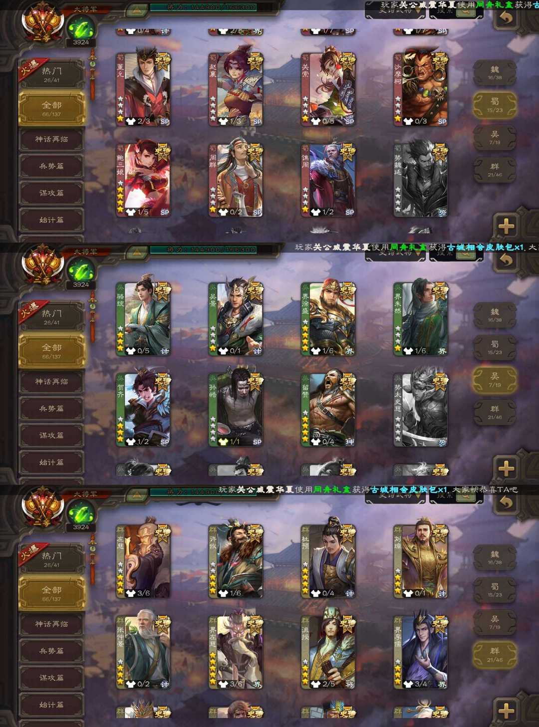 装备描述:【到时不下】v13◆动态神郭嘉神甘宁徐荣刘焉神曹贼◆杜预◆界钟会◆曹婴◆鲍三娘◆ 魏:界钟会 曹婴 马钧 王元姬 戏志才 界曹真 蜀:谋马超 谋赵云 花鬘 鲍三娘 吴:界徐盛 留赞 骆统 群:杜预 刘璋 刘焉 徐荣 南华老仙 祢衡 神:神曹贼 神郭嘉 神甘宁 神孙策