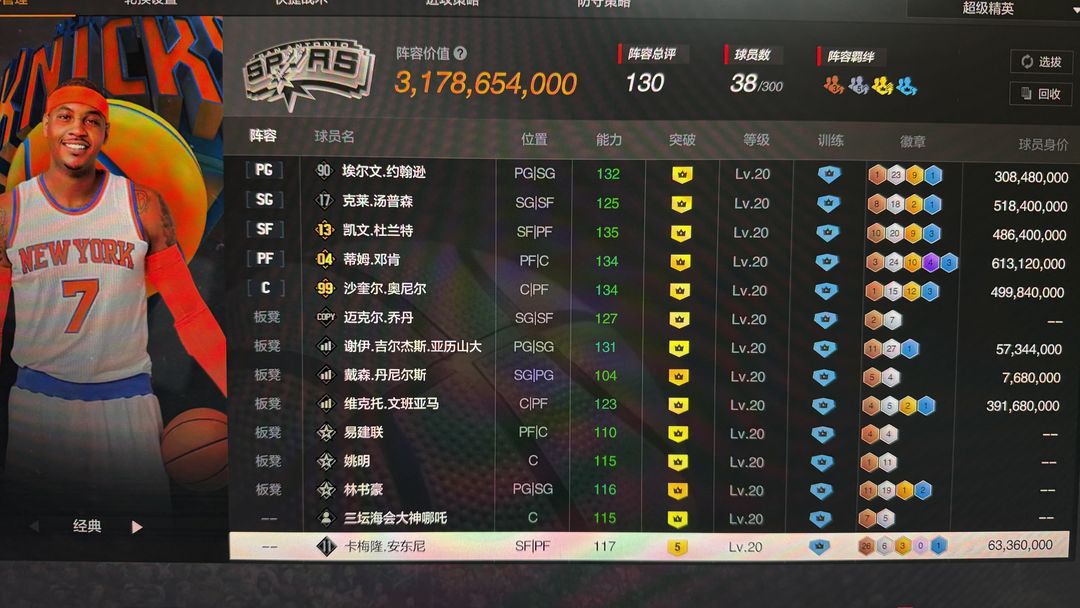 装备描述:如果在租号期间tgp登了,那是我玩别的游戏,不会顶篮球的。 32亿三阵容,全满图满特训,具体看图。三模式都爽。随你哪个位置都有好玩的