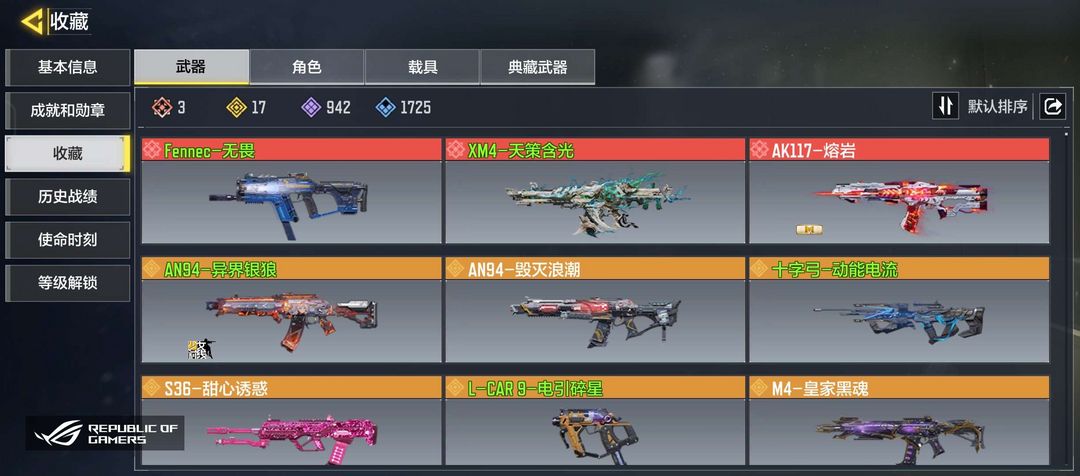 3神话,17传说,短剑无畏,xm4天策含光,ak117熔岩,an94异界银狼,卢卡斯高达联动皮